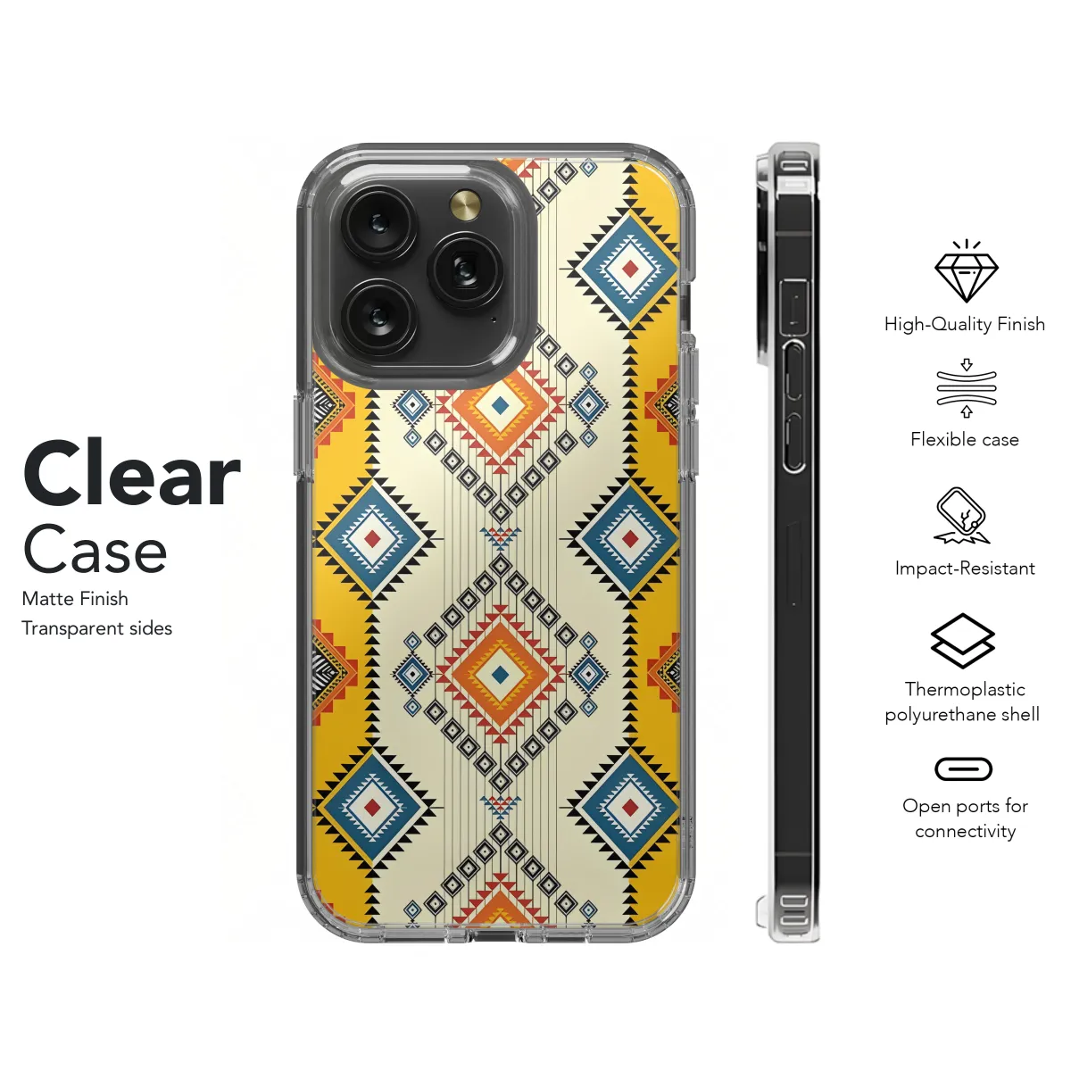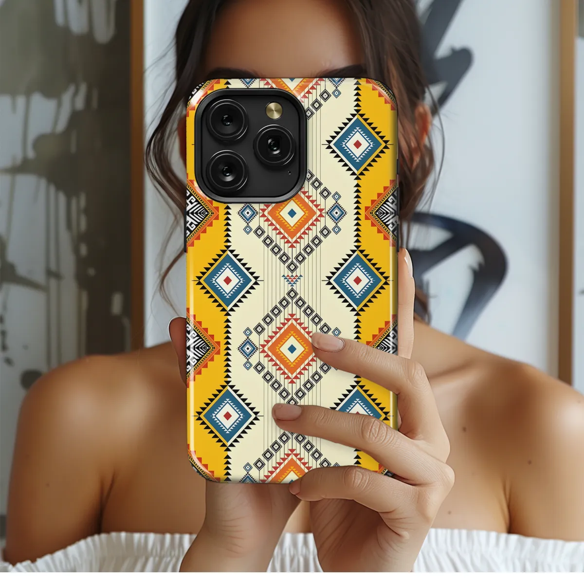 Protect your phone with style with our Geometric Ethnic Phone Case. This eye-catching case features vibrant geometric patterns inspired by ethnic designs. Its durable construction provides excellent protection from scratches, drops, and bumps. Compatible with various iPhone, Samsung, and Pixel models, this case offers a perfect fit and easy access to all buttons and ports.