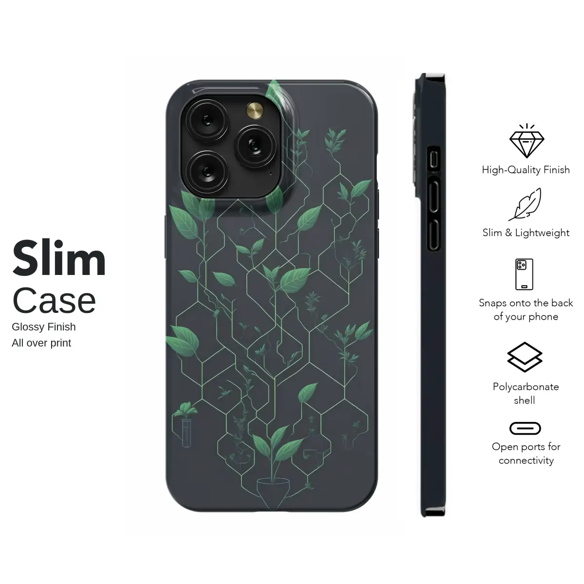 Embrace a fusion of nature and technology with this captivating botanical design. The artwork features an intricate network of luminous green geometric lines, from which vibrant leaves and plants sprout and grow. Set against a sophisticated dark background, this design creates a stunning visual of a futuristic, digital terrarium, blending organic beauty with modern, minimalist aesthetics.