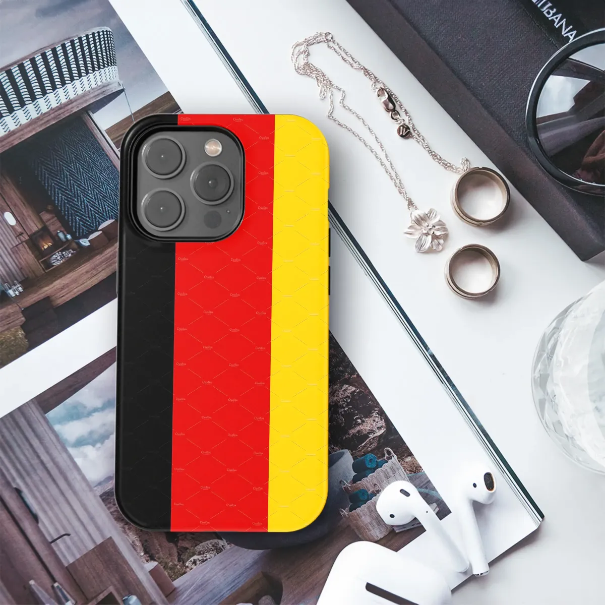 Show your national pride with this vibrant and stylish design, perfect for adding a touch of patriotism to your everyday life. This bold graphic features the classic colors of black, red, and gold, arranged in a striking vertical tricolor. The design is crisp and clean, ensuring your accessory makes a statement without being overwhelming. High-quality printing guarantees long-lasting vibrancy and protection against scratches and fading. This unique accessory is an ideal gift for yourself or any proud citizen, making it a thoughtful and memorable present for birthdays, holidays, or any special occasion. The simple yet impactful design is versatile, working seamlessly with various styles and personalities. Express yourself confidently with this eye-catching, durable, and proudly patriotic design that will turn heads wherever you go. Get yours today and celebrate your heritage in style! #patriotic #flag #nationalpride #tricolor #blackredgold #gift #accessories #stylish #durable #highquality #design