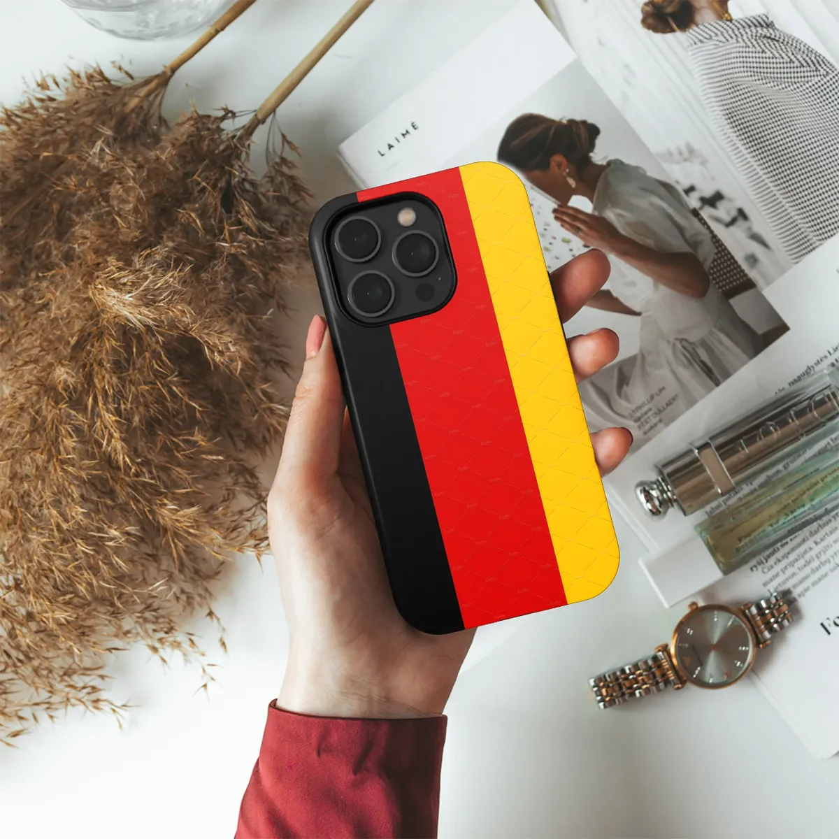 Show your national pride with this vibrant and stylish design, perfect for adding a touch of patriotism to your everyday life. This bold graphic features the classic colors of black, red, and gold, arranged in a striking vertical tricolor. The design is crisp and clean, ensuring your accessory makes a statement without being overwhelming. High-quality printing guarantees long-lasting vibrancy and protection against scratches and fading. This unique accessory is an ideal gift for yourself or any proud citizen, making it a thoughtful and memorable present for birthdays, holidays, or any special occasion. The simple yet impactful design is versatile, working seamlessly with various styles and personalities. Express yourself confidently with this eye-catching, durable, and proudly patriotic design that will turn heads wherever you go. Get yours today and celebrate your heritage in style! #patriotic #flag #nationalpride #tricolor #blackredgold #gift #accessories #stylish #durable #highquality #design