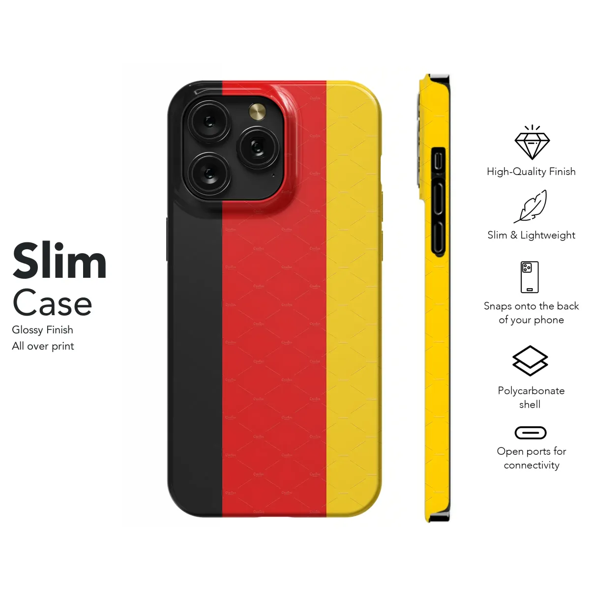 Show your national pride with this vibrant and stylish design, perfect for adding a touch of patriotism to your everyday life. This bold graphic features the classic colors of black, red, and gold, arranged in a striking vertical tricolor. The design is crisp and clean, ensuring your accessory makes a statement without being overwhelming. High-quality printing guarantees long-lasting vibrancy and protection against scratches and fading. This unique accessory is an ideal gift for yourself or any proud citizen, making it a thoughtful and memorable present for birthdays, holidays, or any special occasion. The simple yet impactful design is versatile, working seamlessly with various styles and personalities. Express yourself confidently with this eye-catching, durable, and proudly patriotic design that will turn heads wherever you go. Get yours today and celebrate your heritage in style! #patriotic #flag #nationalpride #tricolor #blackredgold #gift #accessories #stylish #durable #highquality #design
