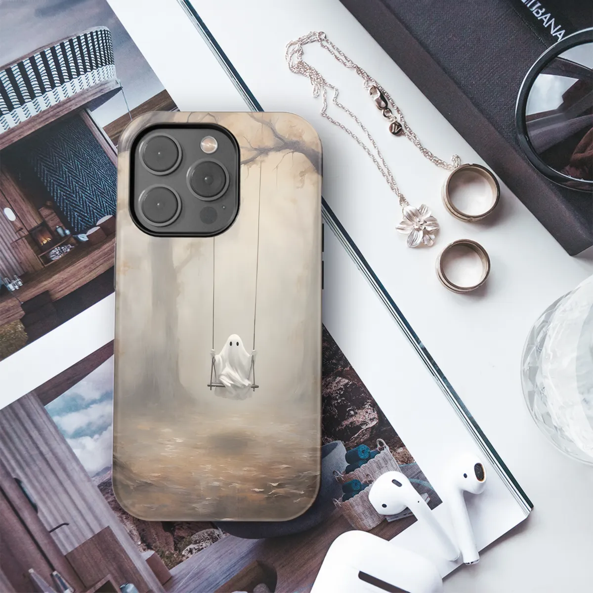 Embrace the ethereal with this Ghost on a Swing Phone Case. Its haunting design features a graceful ghost adorned with intricate patterns, suspended on a ghostly swing against a twilight sky. Crafted to protect your device with style, this case is a unique and enchanting companion for your smartphone, summoning a touch of the supernatural into your daily routine.