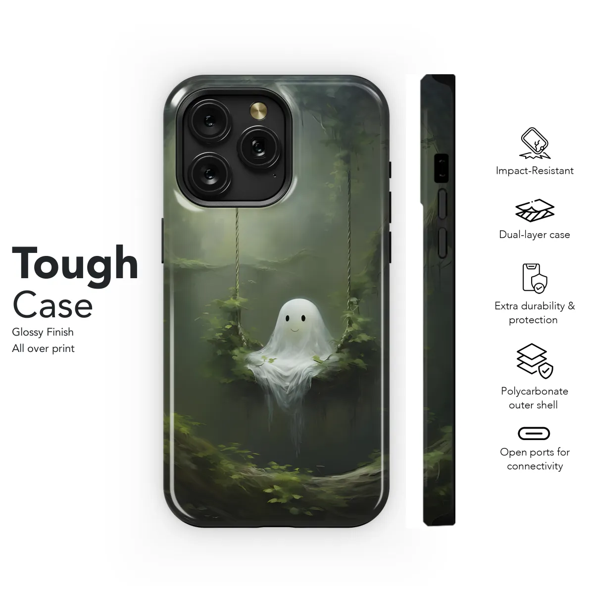 Accessorize your phone with a touch of the supernatural with our Ghost on a Swing Phone Case. This unique and eye-catching case features a haunting silhouette of a ghost swinging gently in the breeze. Whether you're a fan of the paranormal or simply appreciate artistic flair, this case is sure to turn heads. Its durable construction provides excellent protection for your device, while its slim profile ensures a comfortable grip. Available for a wide range of iPhone, Samsung, and Pixel models, this Ghost on a Swing Phone Case is the perfect way to add a touch of mystery to your everyday tech.