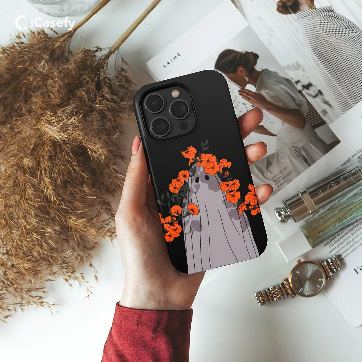 Introducing our Ghost Spooky Red Floral Head Flower phone case, a hauntingly beautiful blend of the supernatural and floral elegance. Featuring a ghostly figure adorned with red flowers, this case adds a touch of mystery and sophistication to your device. Embrace the spooky season in style while protecting your phone with flair. Perfect for fans of the macabre and lovers of floral designs.