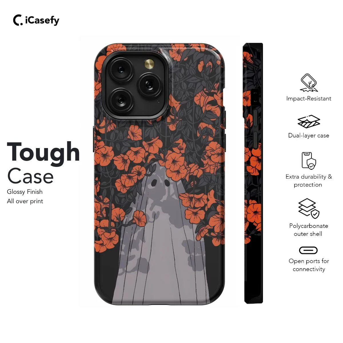 Introducing our Ghost Spooky Red Flower Head phone case, a captivating fusion of the supernatural and floral elegance. Featuring a ghostly figure adorned with striking red flowers, this case adds a touch of mystery and sophistication to your device. Embrace the spooky season in style while protecting your phone with flair. Perfect for those who appreciate the macabre and love unique and eye-catching designs.