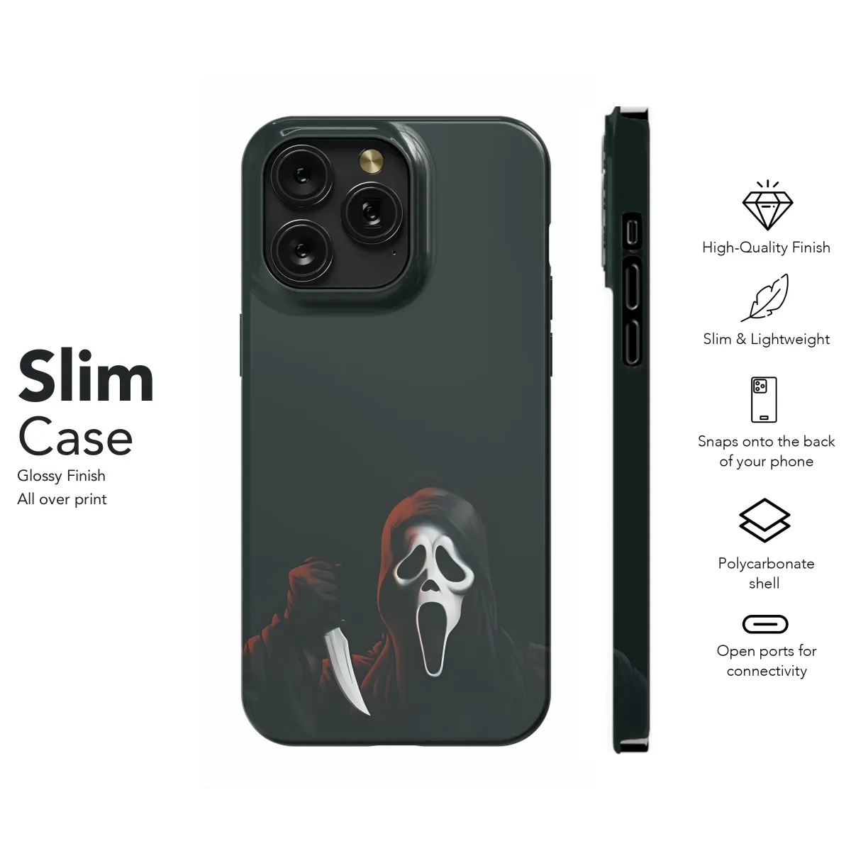Unleash your inner horror fanatic with this chilling design. The iconic Ghostface, rendered in striking detail, wields his signature weapon against a backdrop of ominous darkness. This high-quality image is perfect for adding a touch of terrifying style to your personal device. Showcase your love for suspense and the thrill of the unknown with this bold graphic. Prepare to turn heads and start conversations with this captivating and uniquely spooky artwork. A perfect gift for fellow horror enthusiasts or a treat for yourself, this design guarantees a chilling aesthetic. Its dark, moody palette and sharp imagery ensure it's a standout piece, whether you're attending a Halloween party or simply expressing your dark side. The print's vibrant colors ensure a long-lasting, high-definition image that will withstand daily use. Get ready to scream in style! This design is available on various device sizes to fit your needs. Order yours today and bring the fright to your everyday life.