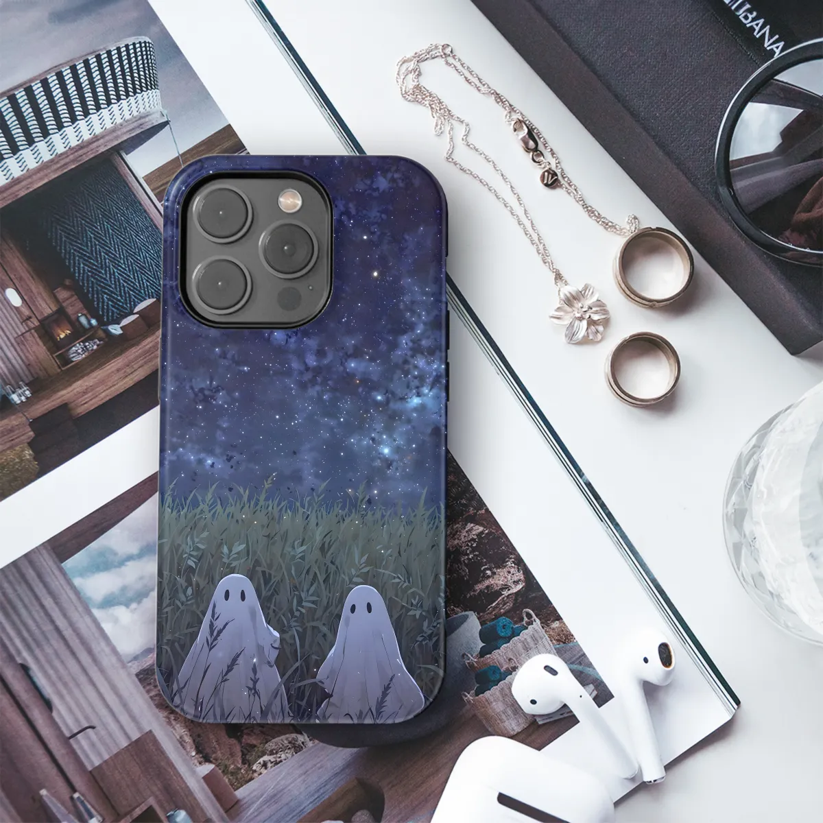 Protect your phone in ethereal style with our Ghostly Night Sky phone case. The mesmerizing artwork features swirling nebulas and celestial wonders, evoking the awe-inspiring vastness of the cosmos. Made with durable materials, this case shields your device from bumps, scratches, and the haunting grip of spectral hands. Available for a range of iPhone, Samsung, and Pixel models, let this case be your celestial guardian against the unknown.