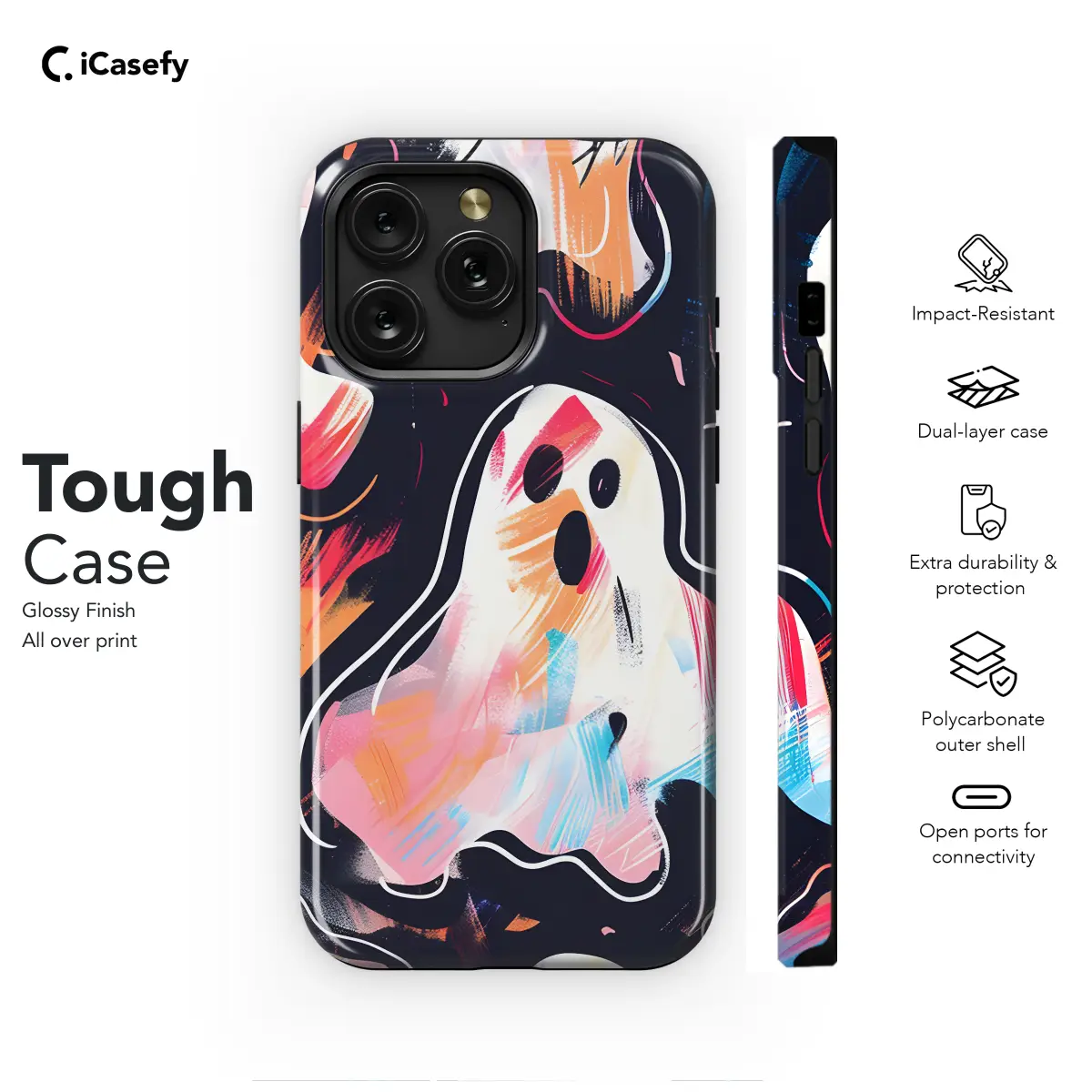 Trick or treat your phone to the ultimate spooky makeover with our exclusive Ghosts and Ghouls Tropical Halloween Phone Case! This spine-chilling cover will transport your device into a vibrant Halloween carnival, featuring mischievous ghosts and playful ghouls frolicking amidst lush tropical foliage. Available for various iPhone, Samsung, and Pixel models, you can revel in the eerie fun wherever you go. Its durable construction ensures your device remains safe from any tricks or treats that come your way, while the vibrant colors and intricate patterns add a touch of haunting style to your everyday adventures.
