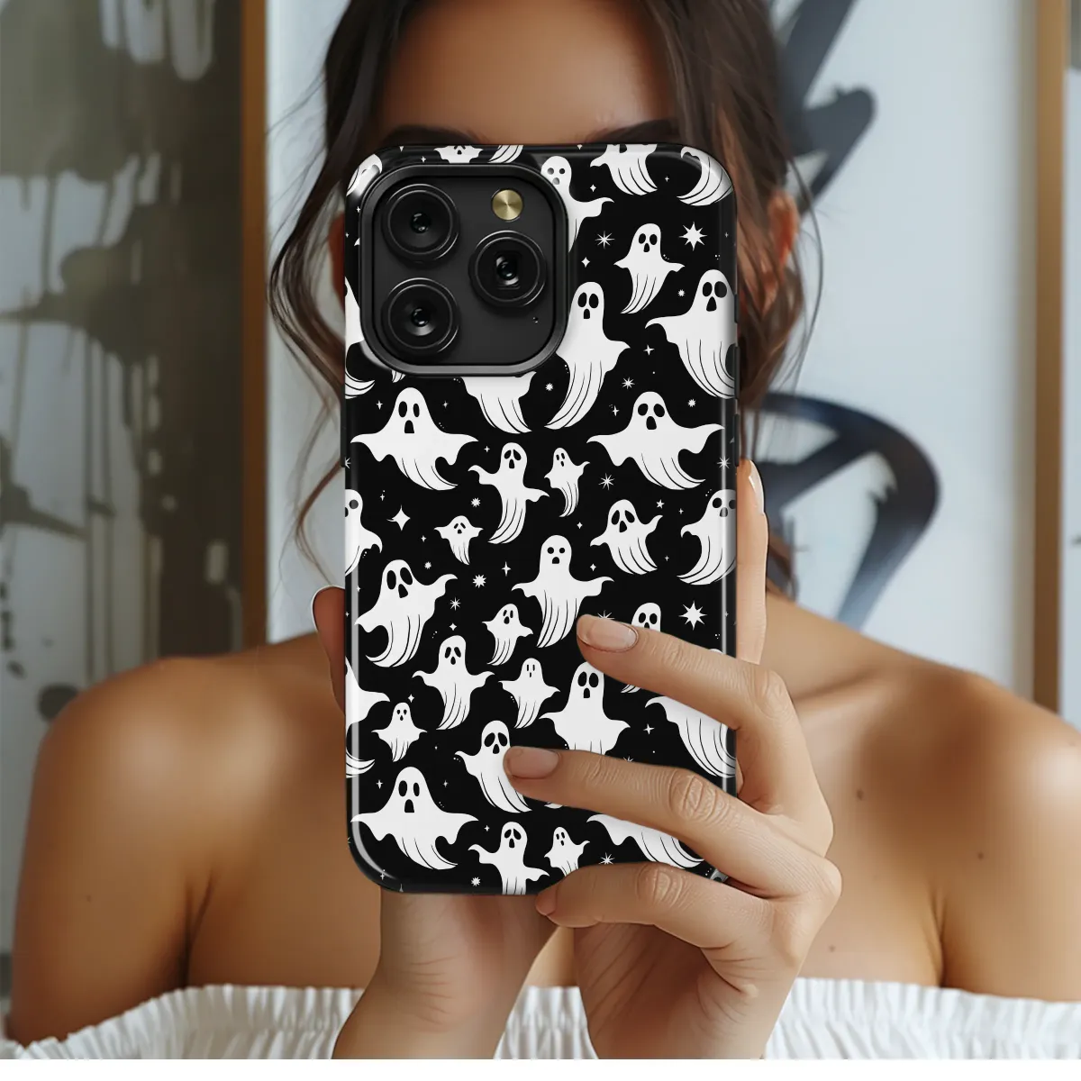 Let your spooky side shine and carry a little piece of the supernatural with you everywhere you go! This whimsical ghost gathering design features a flurry of friendly phantoms floating through a velvety, star-dusted night sky, transforming your most essential device into a captivating piece of wearable art. Each little spirit, with its own unique and endearing "boo!", dances across the deep black canvas, creating a mesmerizing celestial pattern that's both cute and wonderfully gothic. This isn't just a simple accessory; it's a protective charm for your pocket-sized portal, wrapping your digital world in a durable and stylish embrace. Perfect for the modern witch, the lover of year-round Halloween vibes, or anyone with a flair for the dark academia aesthetic, this monochrome design adds a touch of playful paranormal personality to your daily routine. It’s the ideal unique gift for your alt-style bestie or a special treat to showcase your own enchanting spirit, ensuring your connection to the cosmos (and your social circle) stays safe, sound, and spectacularly spectral.