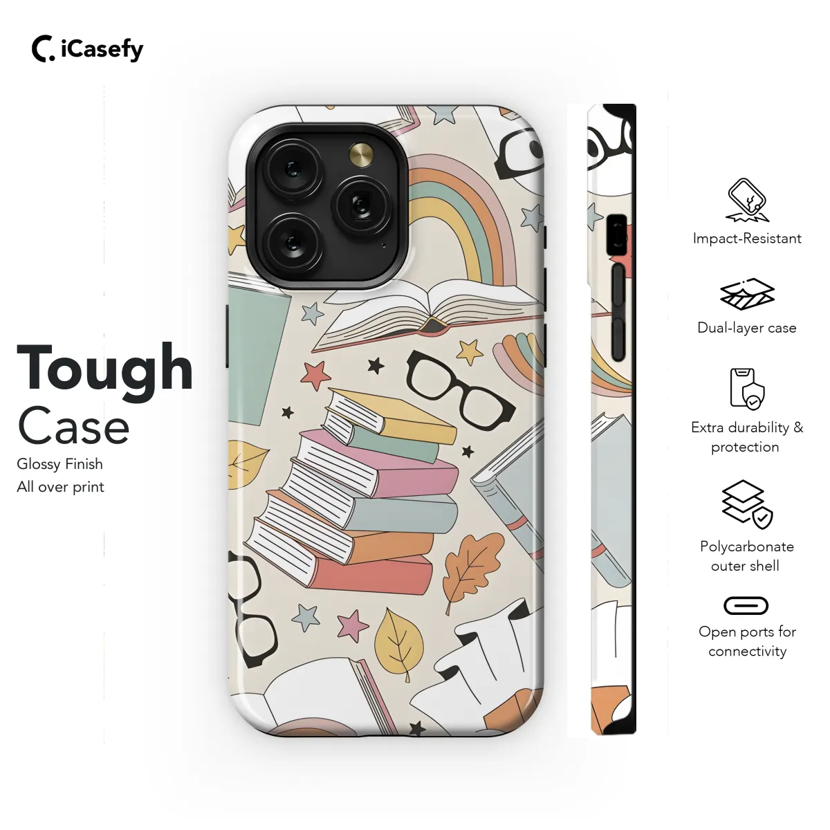 Experience the literary paradise with our exquisite phone case featuring an alluring pattern of open books and sleek eyeglasses! This captivating design captures the essence of a cozy library, adorned with the wisdom of words and the fascination of eyewear. Protect your device in style while celebrating your love for knowledge and fashion with this mesmerizing phone cover.