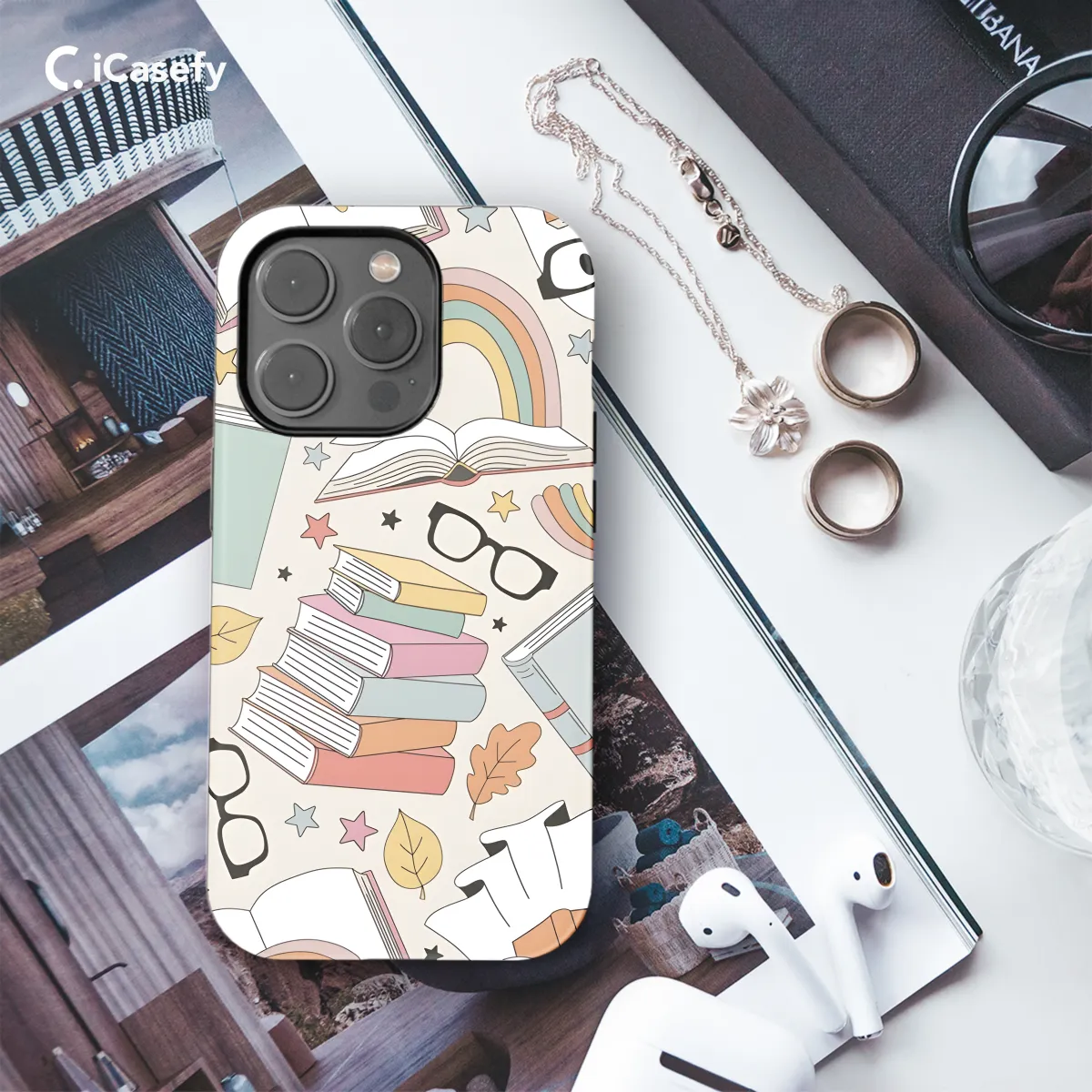 Experience the literary paradise with our exquisite phone case featuring an alluring pattern of open books and sleek eyeglasses! This captivating design captures the essence of a cozy library, adorned with the wisdom of words and the fascination of eyewear. Protect your device in style while celebrating your love for knowledge and fashion with this mesmerizing phone cover.