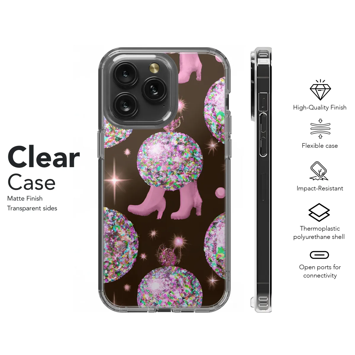 Behold the epitome of celestial allure, our Glitter Disco Boots Succulent Phone Case! Compatible with iPhone, Samsung, and Pixel devices, this celestial masterpiece will transform your phone into a cosmic garden of earthly delights. Its iridescent glitter exterior shimmers and captivates like a disco ball, while the delicate succulent adornments evoke the serenity of a lush oasis. Embrace the celestial glamour and the earthy groundedness that this case embodies, and let your phone become a true work of art.