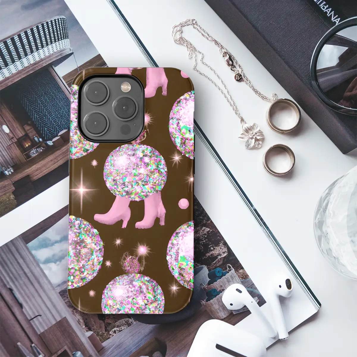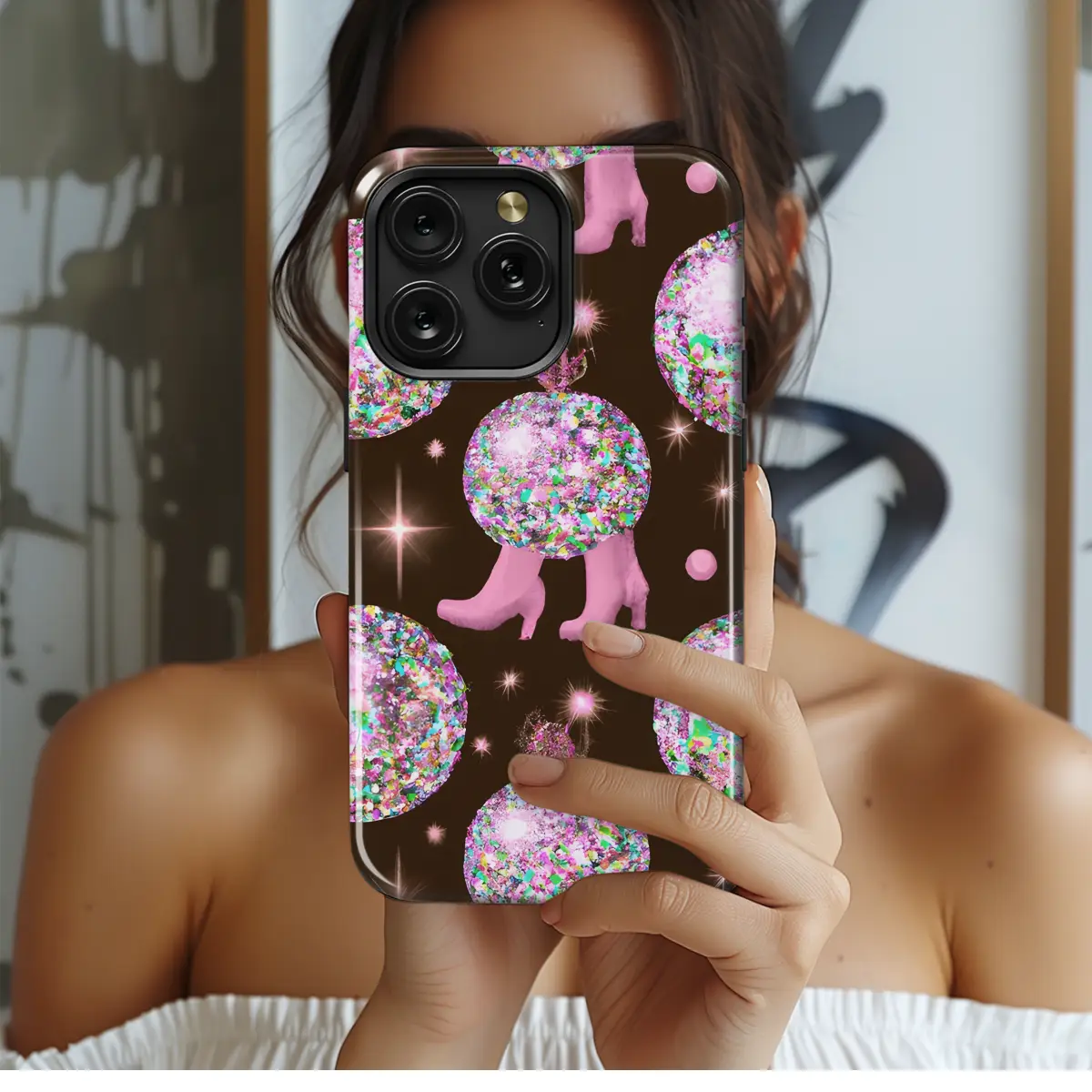 Behold the epitome of celestial allure, our Glitter Disco Boots Succulent Phone Case! Compatible with iPhone, Samsung, and Pixel devices, this celestial masterpiece will transform your phone into a cosmic garden of earthly delights. Its iridescent glitter exterior shimmers and captivates like a disco ball, while the delicate succulent adornments evoke the serenity of a lush oasis. Embrace the celestial glamour and the earthy groundedness that this case embodies, and let your phone become a true work of art.