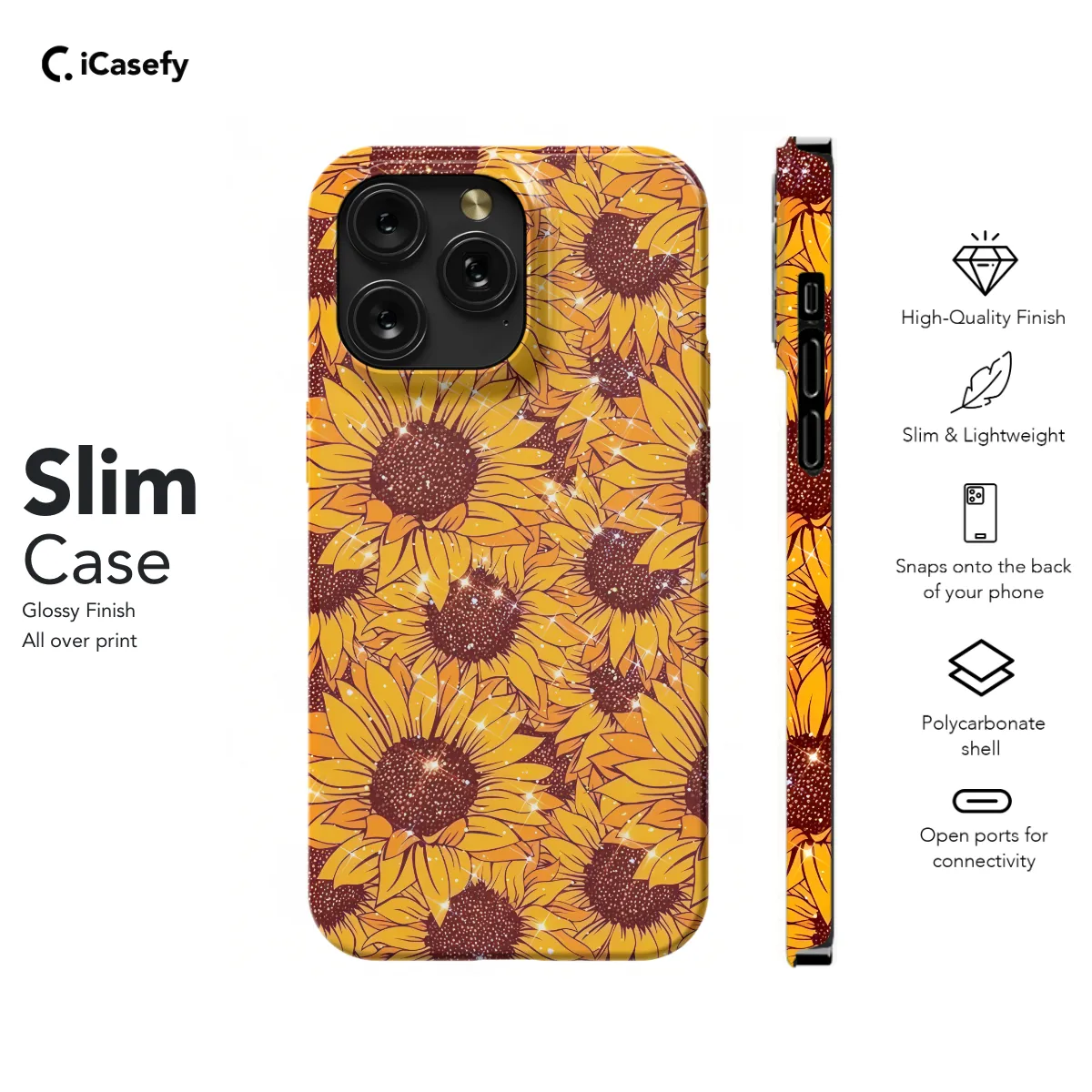 **Illuminate Your Device with Shimmering Sunflowers** Adorn your phone with the breathtaking Glitter Effect Sunflower Phone Case. Its radiant petals, meticulously crafted with shimmering glitter, will captivate onlookers and make your device a true fashion statement. **Protection Meets Style** Beyond its stunning aesthetics, this case provides exceptional protection for your precious smartphone. Its durable construction safeguards against bumps, scratches, and drops, ensuring your device remains flawless. **Compatible with All Major Models** Whether you own an iPhone, Samsung, Pixel, or any other popular phone model, rest assured that our case is tailor-made to fit perfectly, offering seamless access to buttons and ports. **Exclusive Design** Each case is handcrafted with a unique glitter pattern, ensuring your phone stands out from the crowd. Experience the allure of sparkling sunflowers that will brighten up your day and reflect your vibrant personality.