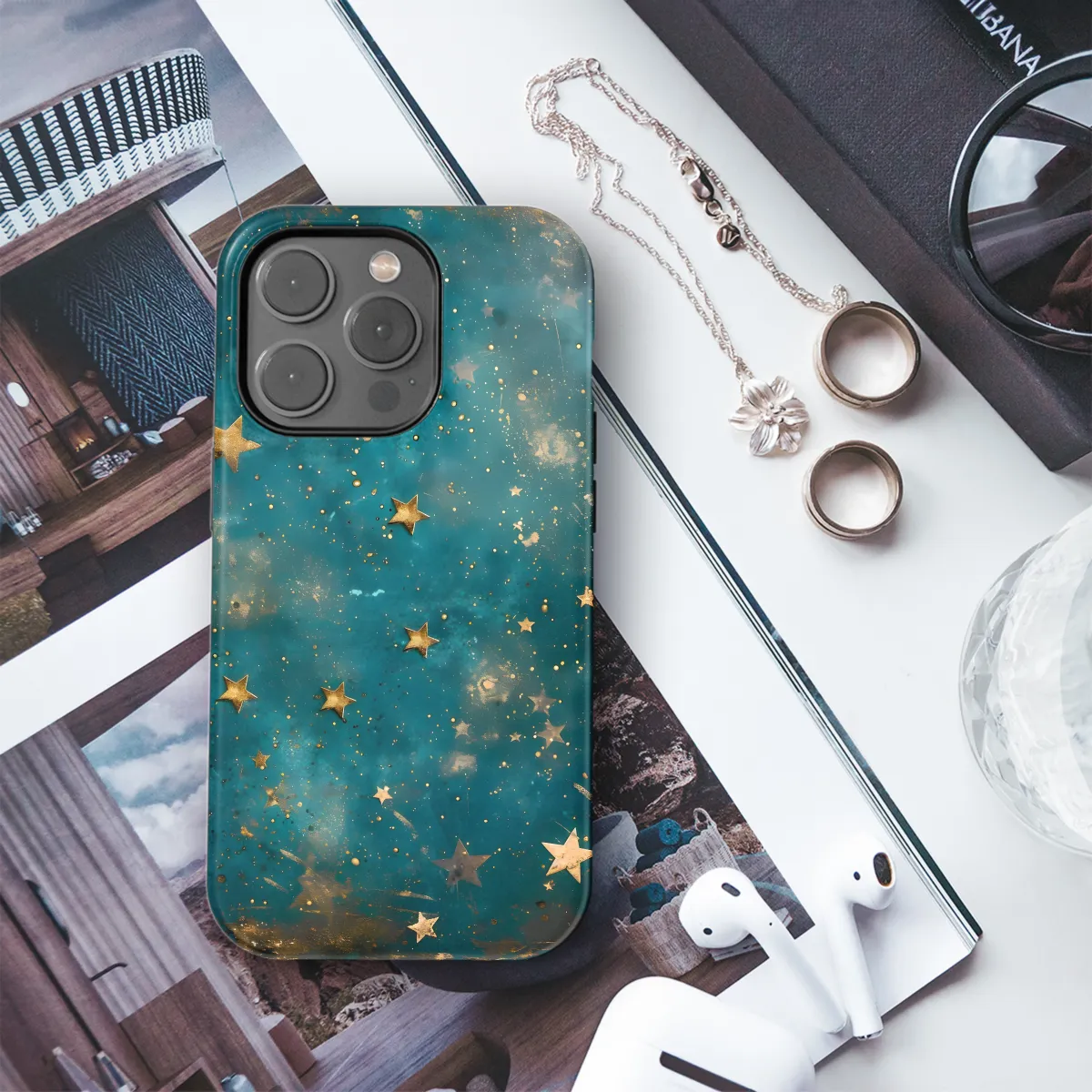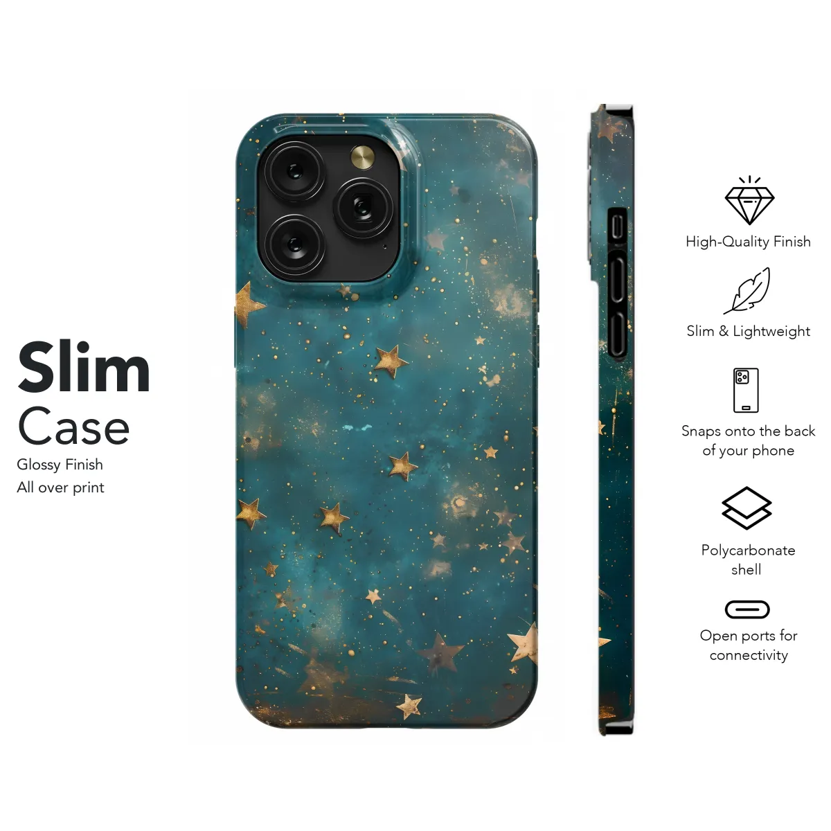 Escape into the cosmos with our Golden Celestial Night Phone Case! Adorned with ethereal golden stars and a dreamy moonlit sky, this case transforms your phone into a celestial masterpiece. Whether you're gazing into the celestial tapestry or capturing starry nights, this case will elevate your phone's aesthetic and protect it from the hazards of the earthly realm.