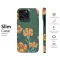 Step into a secret garden where golden marigolds bloom eternally against a rich, emerald green sky. This enchanting design captures the nostalgic charm of a vintage botanical illustration, bringing a piece of the serene countryside to the palm of your hand. Each flower is rendered in a warm, retro palette of burnt orange and sunny yellow, their ruffled petals lovingly detailed with bold, artistic lines. The cool, dusty blue of the stems provides a beautiful contrast, making the blossoms pop with life, while a subtle scattering of dots adds a touch of whimsical texture. This isn't just a pattern; it's a feeling—perfect for the old soul and nature lover who embraces a cozy, cottagecore aesthetic. Let this earthy, folk-art-inspired piece be a daily reminder of nature's simple elegance and a way to carry wildflower magic with you. A thoughtful and beautiful gift for the gardener or vintage enthusiast in your life, this design transforms your everyday essential into a wearable piece of art.