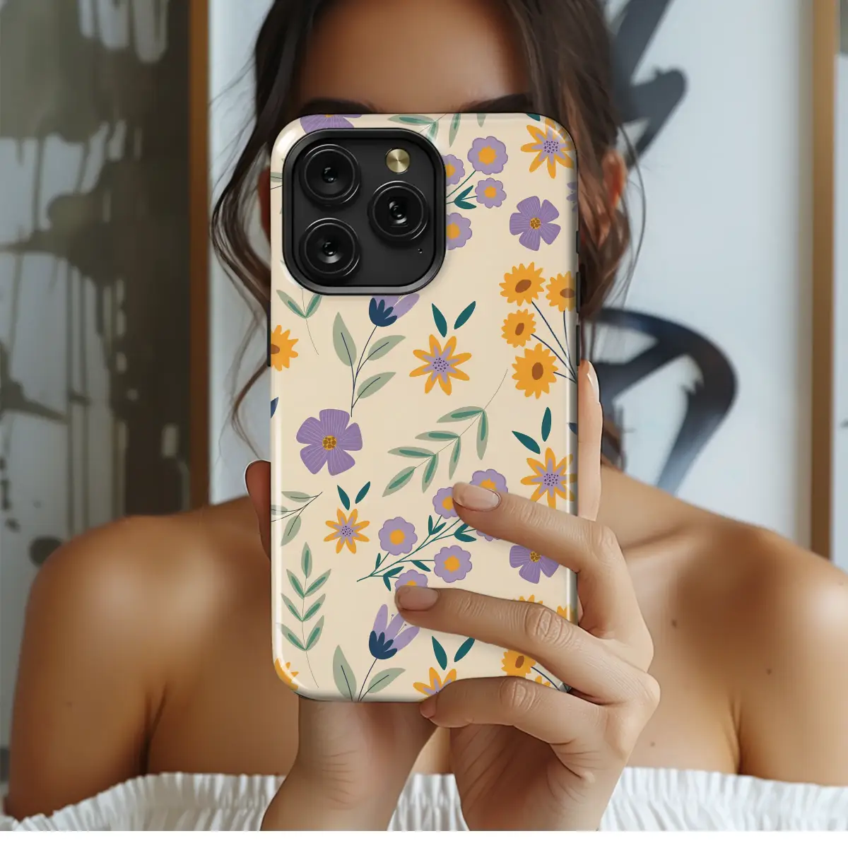 Wander through a whimsical, sun-kissed field every time you glance at this enchanting design. Our Golden Meadow artwork captures the gentle, carefree spirit of a lazy afternoon, featuring a charming scatter of hand-drawn botanicals that feel both nostalgic and refreshingly modern. Cheerful golden sunflowers and sunny yellow daisies dance across the surface, their bright petals radiating pure joy. They mingle beautifully with clusters of soft lavender and deep purple wildflowers, creating a harmonious and eye-catching color palette that soothes the soul. Delicate sage green leaves and rich teal accents weave through the blooms, adding depth and a touch of organic elegance, all set against a warm, creamy pastel background that feels like vintage parchment. This beautiful cottagecore pattern is an absolute dream for anyone who adores a vintage floral aesthetic and wants to carry a piece of nature's simple beauty with them everywhere they go. It’s a perfect touch of boho charm, a whisper of a country garden that brings a pop of personality and happiness to your daily essentials. More than just a pretty design, this botanical illustration makes a thoughtful and unique gift for the nature lover, artist, or dreamer in your life. Offer them a beautiful way to protect and personalize their most-used accessory, letting this lovely floral print be a constant, joyful reminder of sunny days and wildflower dreams.