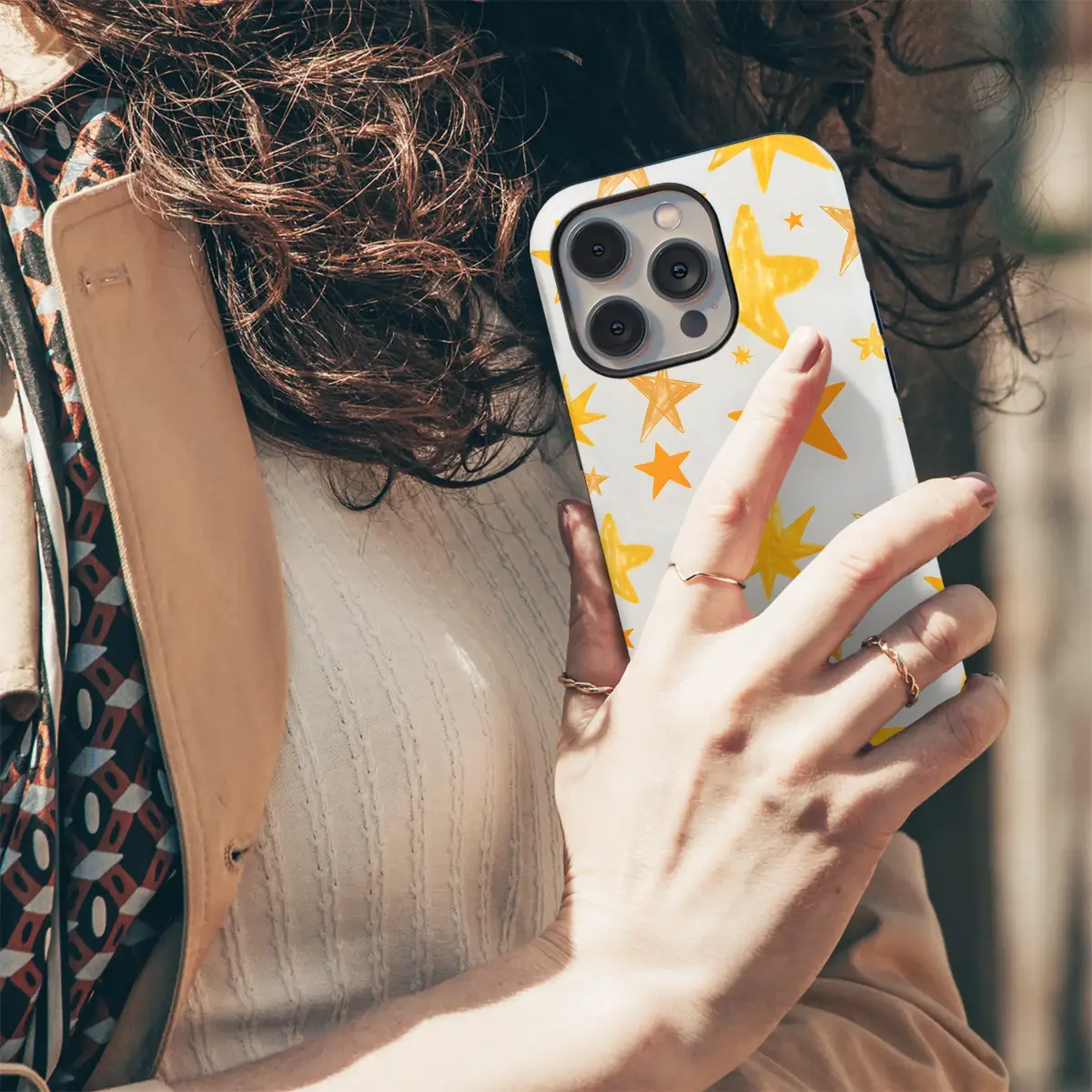 Brighten your day with this cheerful design featuring a scattering of hand-drawn stars in sunny yellow and golden orange hues. The whimsical, crayon-like texture adds a touch of playful charm, perfect for adding a pop of color and personality to your everyday essentials. This vibrant pattern is ideal for those who love a touch of sunshine and a sprinkle of magic. The light grey background allows the starburst design to shine, creating a versatile and eye-catching look that complements any style. This unique design is printed using high-quality inks for vibrant, long-lasting color, ensuring its brilliance will endure. Add a touch of starlit wonder to your life with this delightful, handcrafted-inspired aesthetic that's sure to turn heads and spark joy. Express your individuality with this eye-catching design—the perfect blend of simple sophistication and joyful energy. This design makes a fantastic gift for friends, family, or even yourself! Search terms: stars, yellow, orange, hand-drawn, crayon, whimsical, playful, sunny, vibrant, grey background, magical, cheerful, bright, unique, gift, starburst, design, pattern, aesthetic, individuality, happy, sunshine.