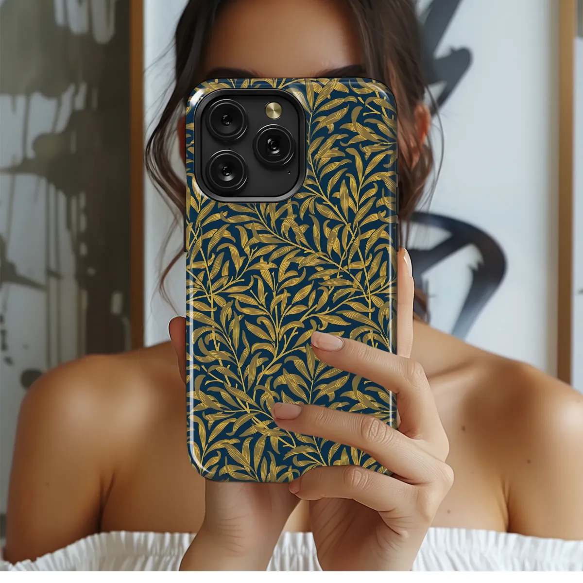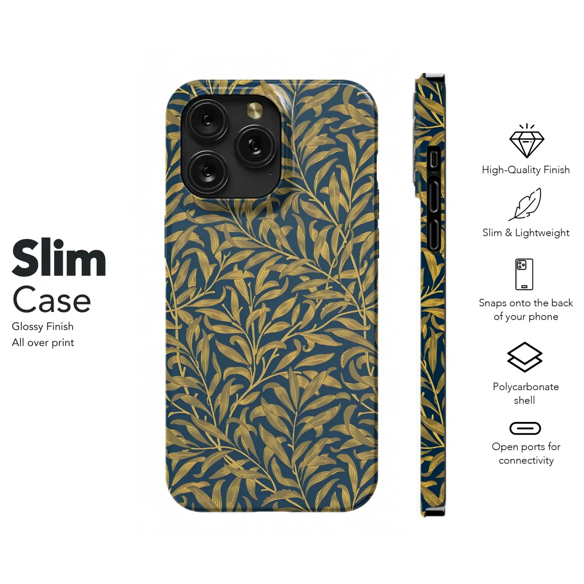 Elevate your style with this exquisite, navy and gold Willow pattern. Inspired by classic botanical art, this luxurious design features intricately detailed leaves and branches, creating a rich and elegant aesthetic. The deep navy background provides a striking contrast to the warm gold foliage, resulting in a sophisticated and timeless look. Perfect for adding a touch of refined charm to your everyday essentials, this design is printed using high-quality, durable inks ensuring vibrant colors that will last. This stunning pattern will make a statement wherever you go, showcasing your appreciation for beauty and detail. This design is compatible with a variety of models and offers a snug, protective fit. Add a touch of artistic flair to your personal style with this beautiful and unique accessory. Its timeless elegance will never go out of fashion, making it a cherished addition to your collection. Secure yours today and experience the difference of quality and artistry.