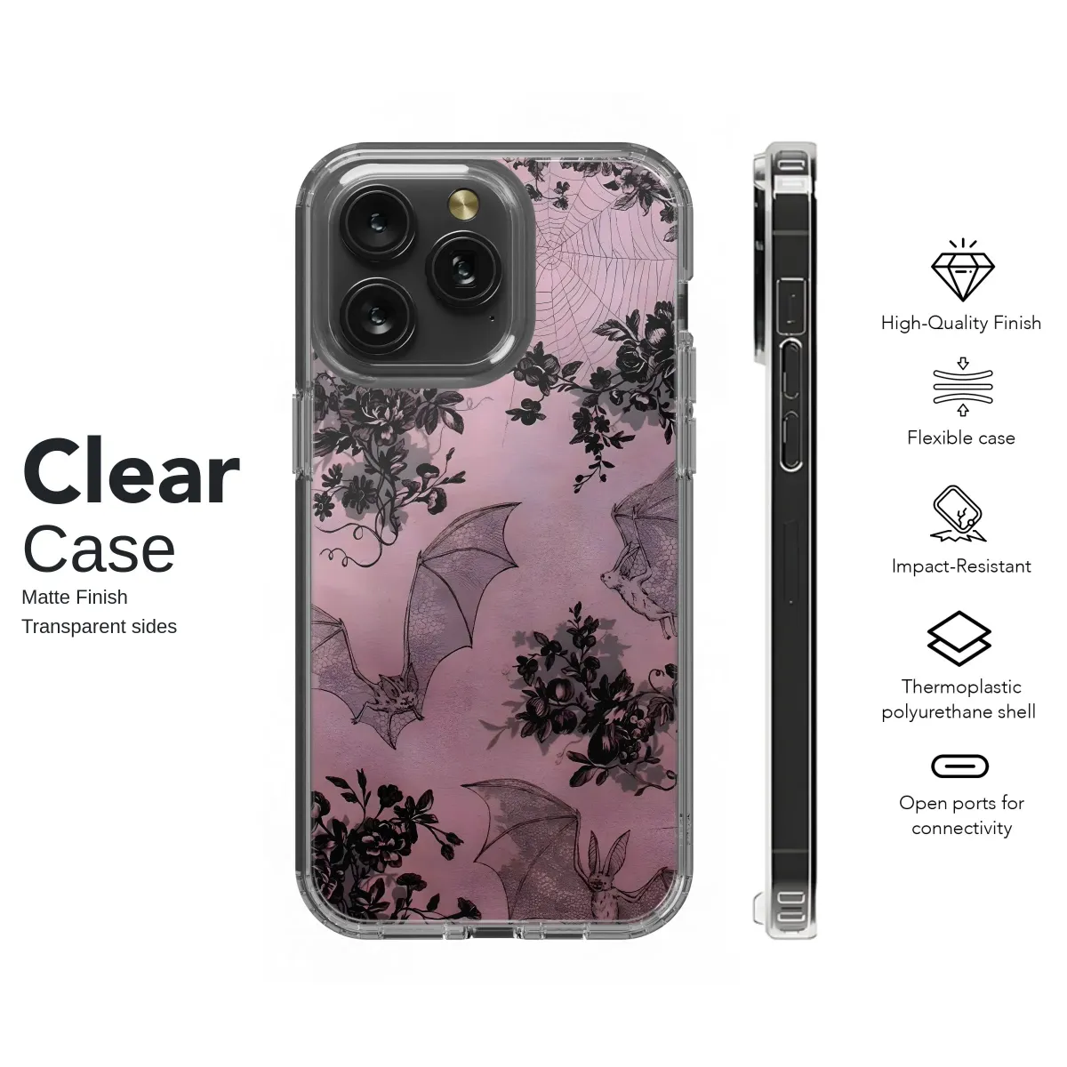 Oppo Reno 11 Pro Gothic Bats & Roses Phone Case - Image 1