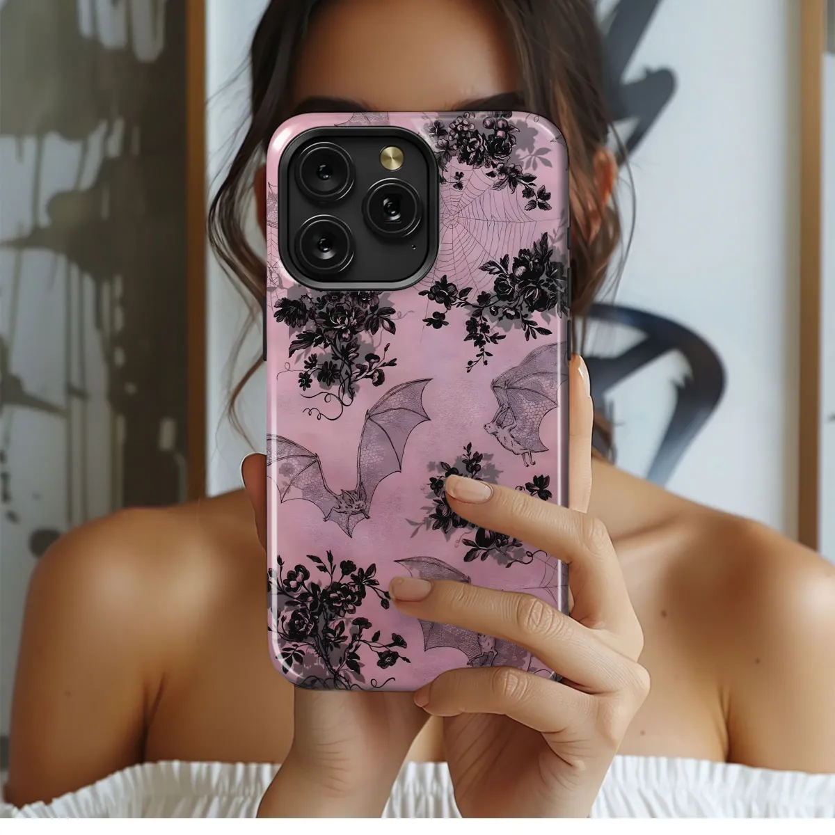 Embrace your dark side with this hauntingly beautiful design. Featuring delicate lace-like bats fluttering amidst a vintage floral arrangement and ethereal spiderwebs on a dusty rose backdrop, this gothic-inspired print is perfect for adding a touch of spooky elegance to your everyday style. The intricate detailing and sophisticated color palette create a captivating aesthetic, ideal for those who appreciate unique and subtly macabre designs. This captivating artwork transforms any accessory into a statement piece, showcasing your appreciation for gothic romance and dark whimsicality. Its timeless charm and versatile design make it a perfect gift for yourself or a fellow lover of all things mysterious and beautiful. The high-quality print ensures vibrant colors and long-lasting durability, allowing you to enjoy this unique design for years to come. This enchanting pattern is guaranteed to turn heads and add a touch of gothic glamour to your personal style, making it a must-have for any dark romantic's collection. Order yours today and add a touch of gothic grace to your life! #gothic #darkaesthetic #vintagefloral #bats #spiderwebs #dustyrose #spooky #halloween #darkromance #gothicfashion #unique #whimsical #goth #alternativefashion #gothgirl #gothstyle #darkacademia