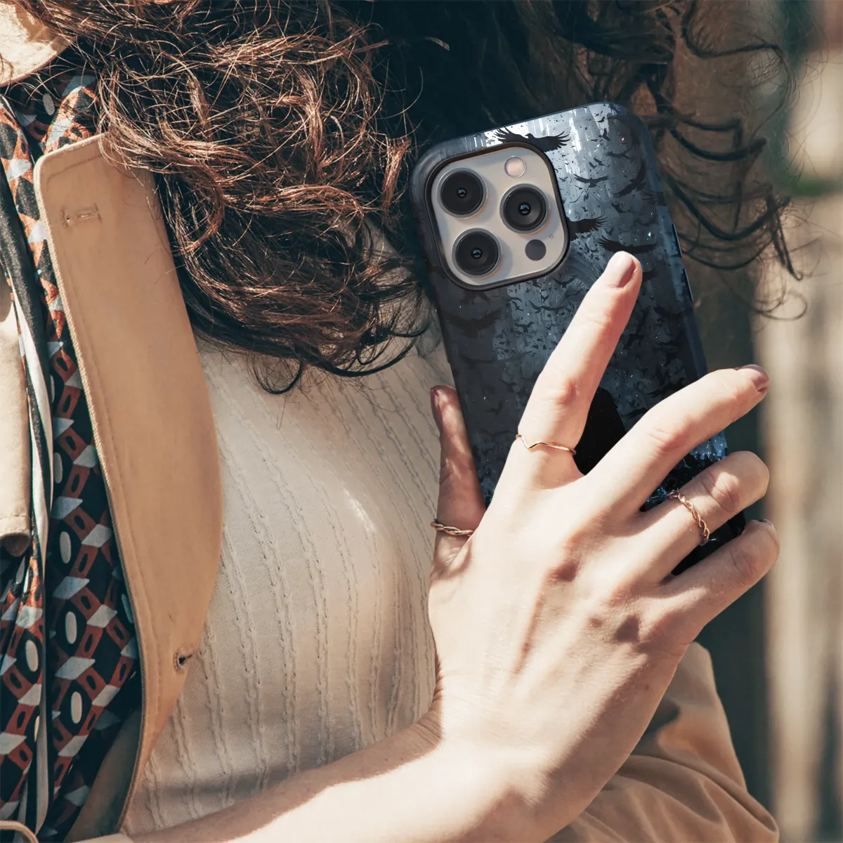 Embrace the mystery with this captivating design, featuring a lone figure shrouded in shadows amidst a swirling flock of ravens. The gothic architecture and ethereal atmosphere create a powerful and enigmatic image, perfect for expressing your unique style. This high-quality print showcases stunning detail and rich, dark tones, ensuring your accessory stands out from the crowd. The artwork’s moody palette and dramatic composition add a touch of brooding elegance to any outfit. A statement piece for those who appreciate dark fantasy art and captivating visuals, this design offers a sophisticated and artistic expression. Perfect as a gift for yourself or a fellow enthusiast of gothic aesthetics, this accessory will evoke intrigue and admiration wherever you go. The vivid print brings the breathtaking artwork to life with remarkable clarity, making it a truly exceptional accessory. Its durable construction ensures long-lasting enjoyment. Stand out from the ordinary; choose this piece of wearable art and let your personality shine through.