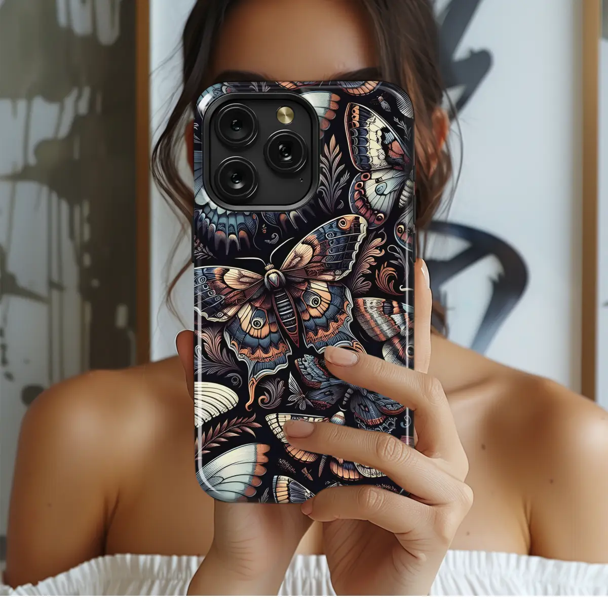 Embrace the enigmatic beauty of nature with our Gothic Moths and Butterflies Phone Case. This ethereal accessory adorns your device with an enchanting array of intricate moths and butterflies, their wings adorned with mesmerizing patterns and deep, evocative hues. Crafted with precision, our case provides superior protection against scratches, bumps, and everyday wear and tear. Its slim profile ensures a comfortable grip, while the vibrant print adds a touch of captivating style. Whether you're a lover of the macabre or simply appreciate the allure of the nocturnal world, this phone case will become a treasured companion. Its unique and eye-catching design will make a striking statement, eliciting admiration from all who behold it.