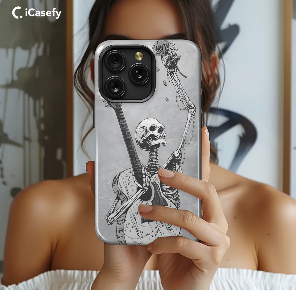 Embrace the macabre with our Gothic Skeleton Red Rose Guitar Phone Case. This ethereal accessory adorns your device with a captivating symphony of darkness and romance. Its intricate skull design draped in a vibrant red rose adds a touch of mystery to your everyday life. Its high-quality material safeguards your phone from the clutches of harm, ensuring its longevity while you rock in style.