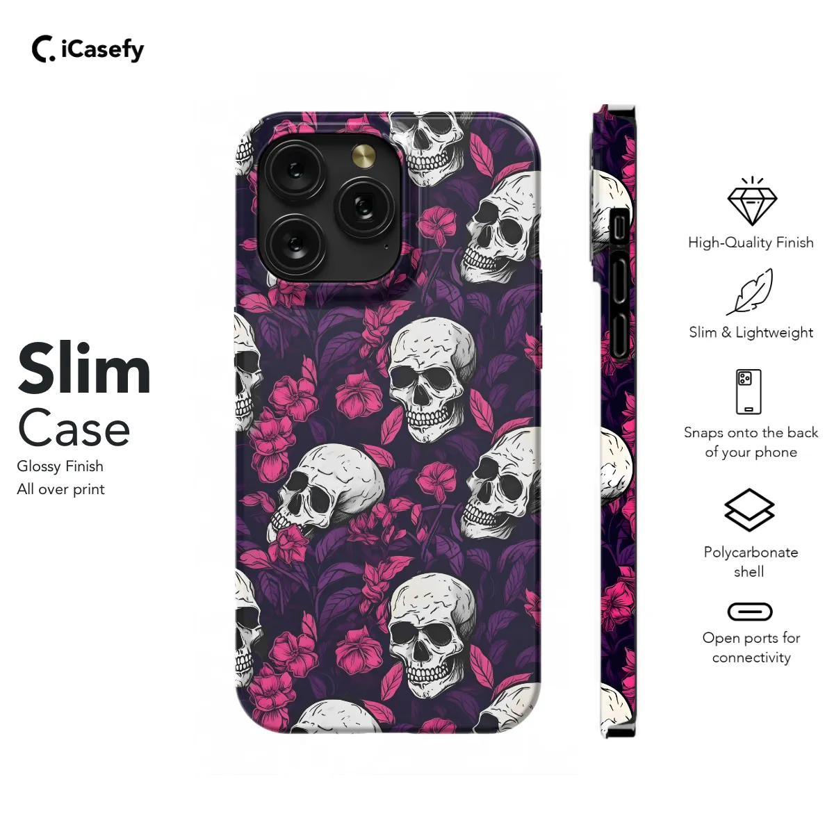 Indulge in the enigmatic charm of this Gothic Skull Head Flower Phone Case! Adorned with intricate skull and floral motifs, this case exudes an alluring fusion of darkness and elegance. Its durable construction shields your smartphone from life's inevitable mishaps, while its exquisite design makes a bold statement wherever you go. Embrace the macabre beauty of this case and embrace your Gothic allure.