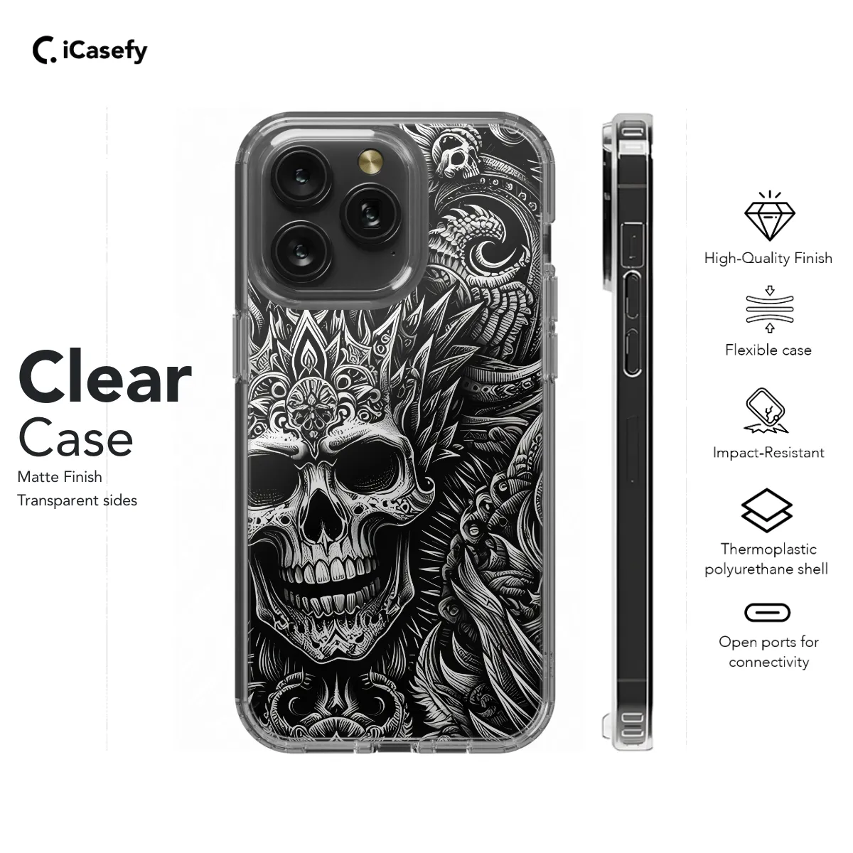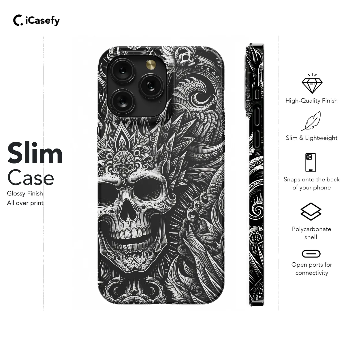 Show the world your edgy style with our Gothic Skull Punk Phone Case! Featuring an intricate skull design and bold punk accents, this case will protect your device while making a statement. Its durable construction and sleek fit ensures both protection and a touch of rebellion. Unleash your inner punk with our Gothic Skull Punk Phone Case today!