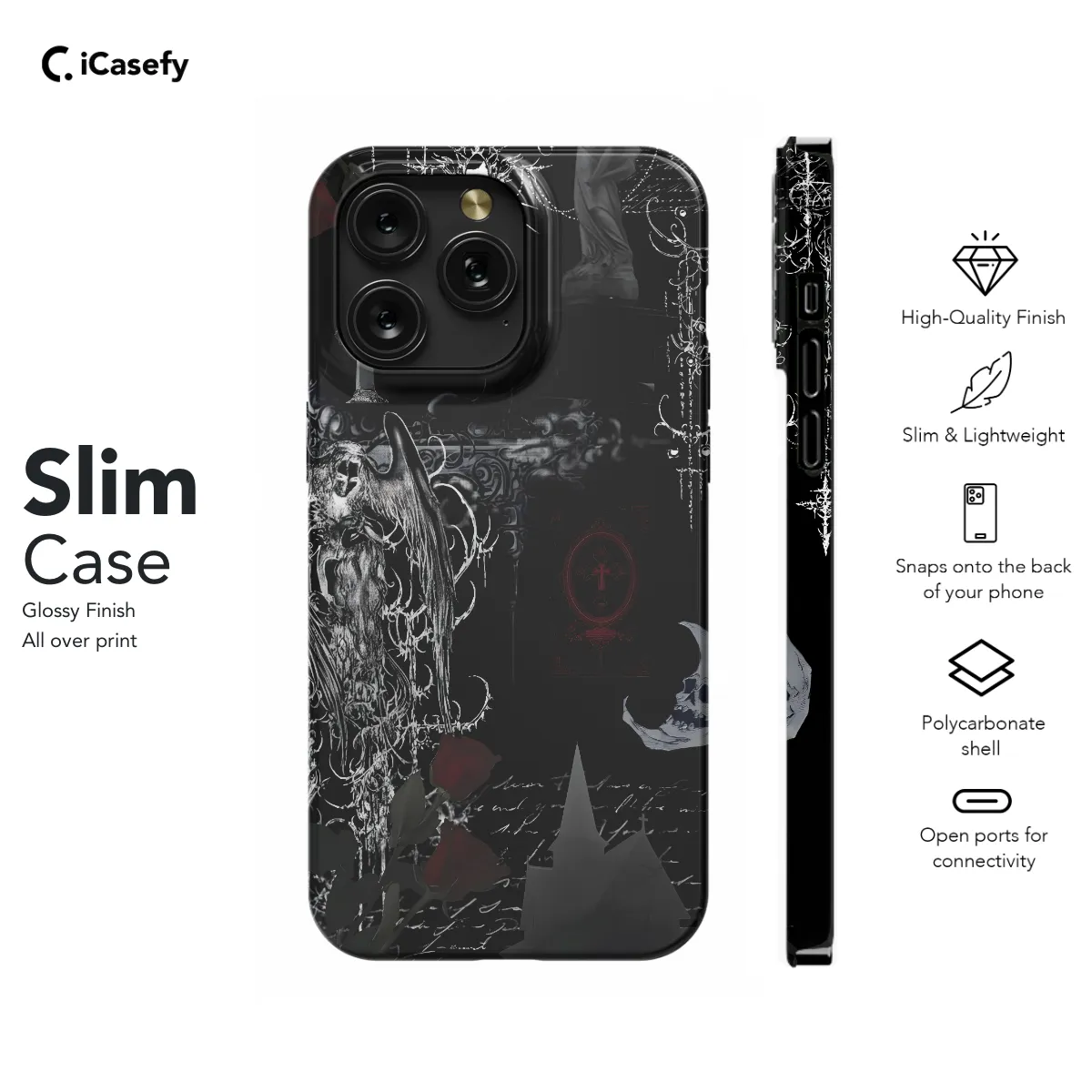 Harness the edgy allure of the past with our Gothic Y2K Retro Phone Case Cover. This captivating case encapsulates the enigmatic spirit of the early 2000s, seamlessly fusing retro nostalgia with a touch of modern Gothic flair. Its sleek silhouette ensures a secure and stylish fit for your iPhone, Samsung, or Pixel 616, while the rich, dark hues and intricate detailing evoke a sense of timeless mystery. Embrace the enigmatic allure of the Y2K era and elevate your phone's style to new heights.