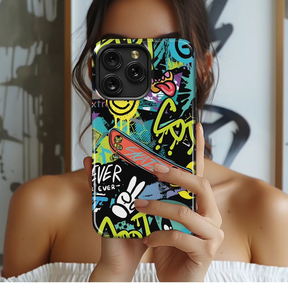 Step into the world of urban art with our Graffiti with Paint Drips Phone Case. This edgy accessory transforms your iPhone, Samsung, or Pixel into a canvas of vibrant self-expression. Featuring bold graffiti lettering and dripping paint effects, it captures the raw energy and rebellion of street culture. Its durable construction protects your device from scratches and bumps, while its sleek design complements any outfit. Let the art of the streets adorn your phone and unleash your creativity with every call and text.