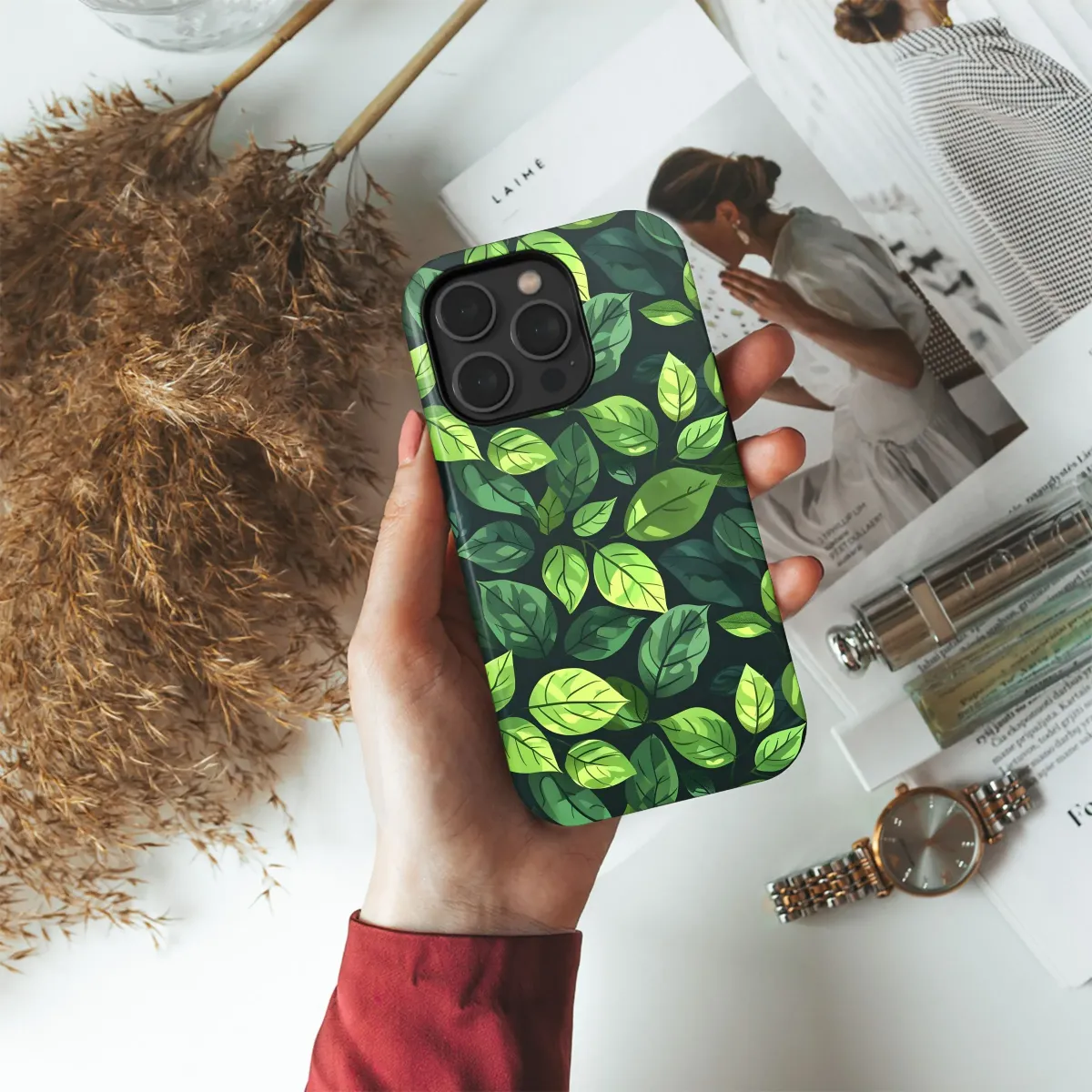 Embrace the lush beauty of nature with this vibrant leaf design. The rich greens and detailed textures create a captivating print that's perfect for adding a touch of the outdoors to your everyday style. This digital illustration showcases a stunning array of leaves, ranging in shades from deep emerald to bright lime, creating a lively and energetic pattern. The detailed veining and subtle shading bring depth and realism to each leaf, transforming your device into a mini botanical garden. This eye-catching design is high-resolution, ensuring vibrant, crisp prints that will last. Its versatile style complements various aesthetics, from minimalist to boho-chic. Perfect as a gift or a self-treat, this design promises a fresh, invigorating look that will elevate your personal style. This nature-inspired pattern adds a touch of tranquility and elegance, guaranteeing that your accessory will stand out from the crowd. Show off your love for the environment and your unique sense of style with this beautiful, high-quality design. Bring the serenity of the forest with you wherever you go.