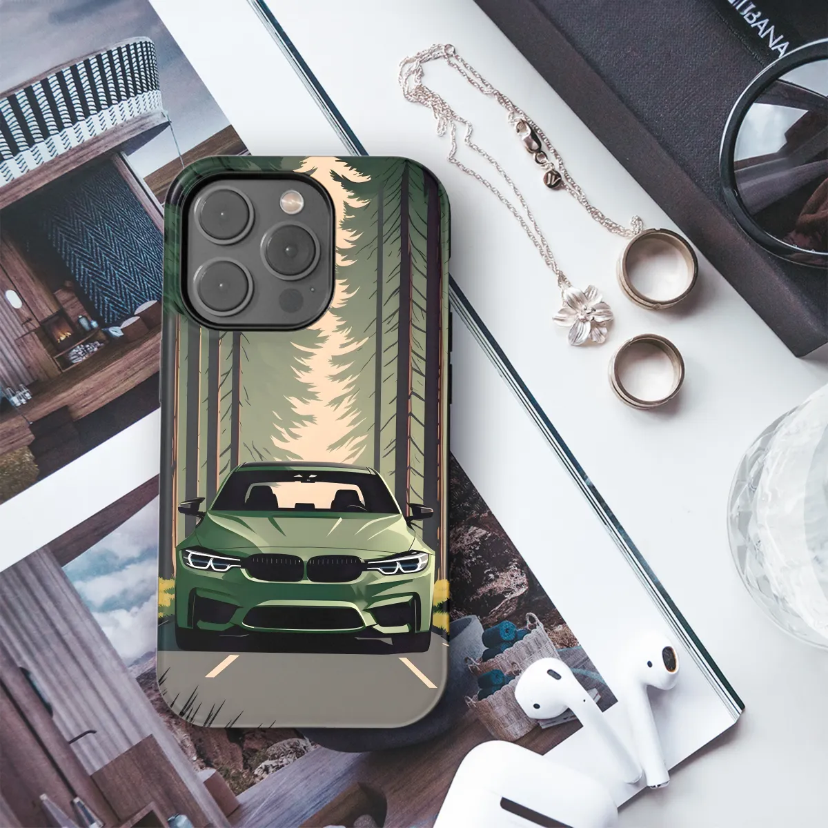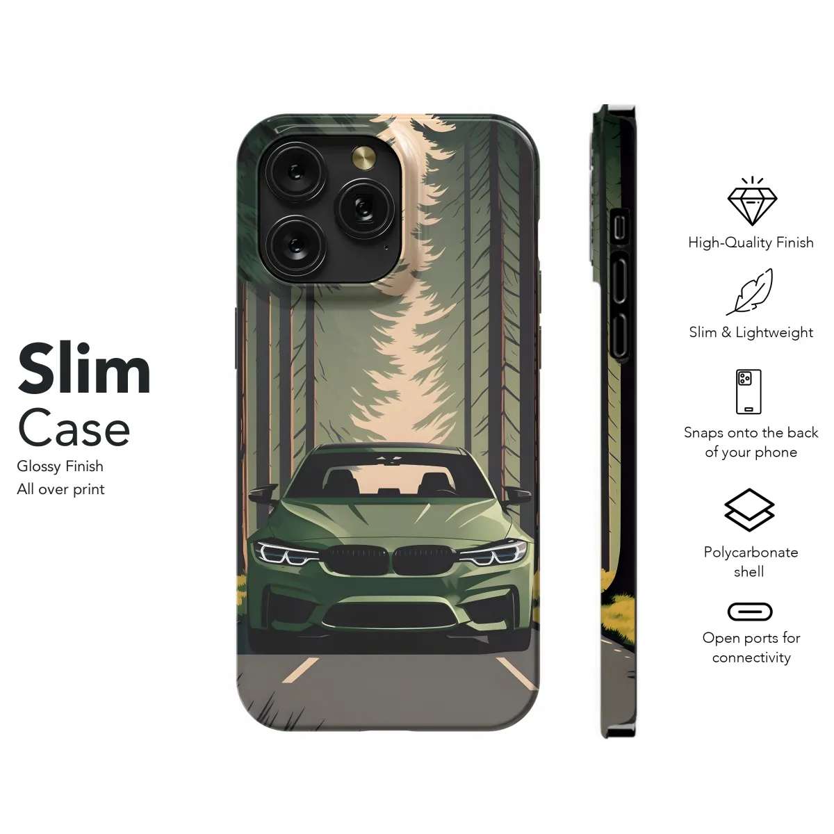 Protect your phone with style with our Forest Drive phone case. Made from durable materials, this case is designed to withstand everyday wear and tear. The forest green color is perfect for adding a touch of nature to your phone. Compatible with all iPhone, Samsung, and Pixel models.