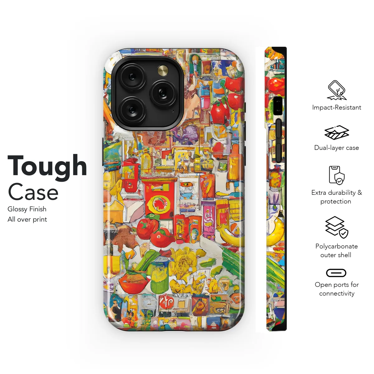 Indulge in the vibrant world of grocery aesthetics with our unique phone case. Featuring an artistic depiction of mouthwatering fruits and vegetables, this case transforms your device into a culinary masterpiece. Its slim profile and precise cutouts provide a perfect fit, ensuring both protection and stylish flair. Whether you're an aspiring chef or simply a food enthusiast, this phone case is the perfect way to add a touch of culinary charm to your everyday life.