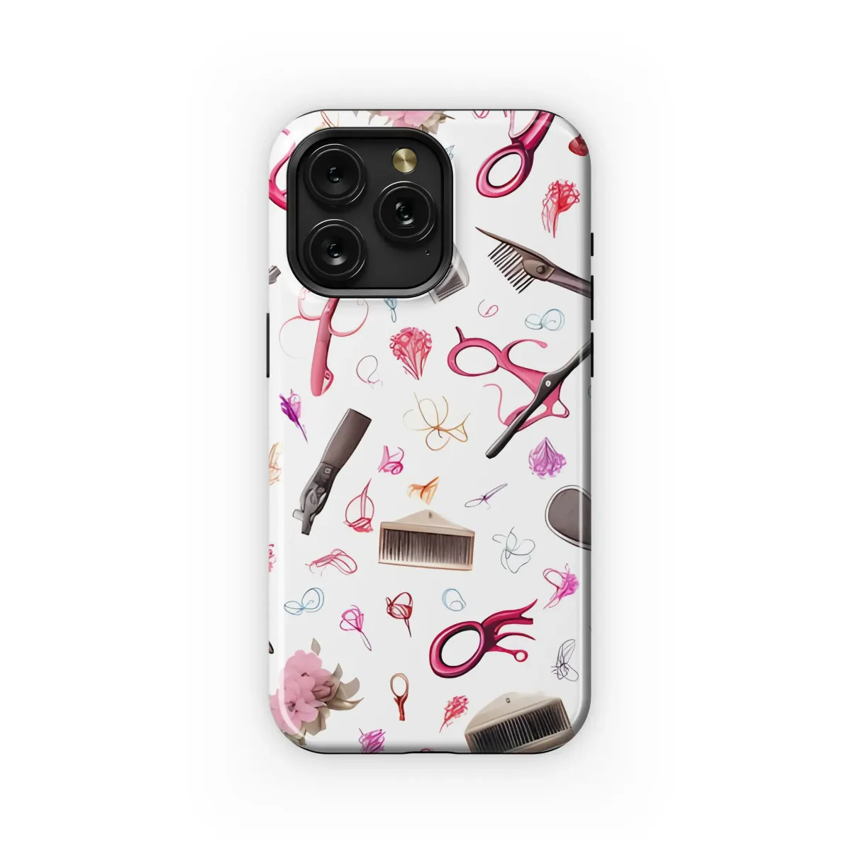 Adorn your device with this beautifully intricate design! Featuring an array of hairstyling tools scattered across a clean white background, this print is perfect for stylists, beauticians, or anyone who appreciates a touch of quirky elegance. Imagine scissors, combs, and other grooming essentials, interspersed with delicate floral accents and playful swirls, creating a captivating and stylish statement. This eye-catching pattern brings a unique blend of professional artistry and feminine charm to your everyday tech. It's the perfect accessory to showcase your passion for beauty and craftsmanship or a thoughtful gift for the style-savvy individual in your life. Embrace the art of hairstyling with this distinctive and fashionable piece. Ideal for beauty lovers, salon professionals, and those seeking a unique and artistic expression.