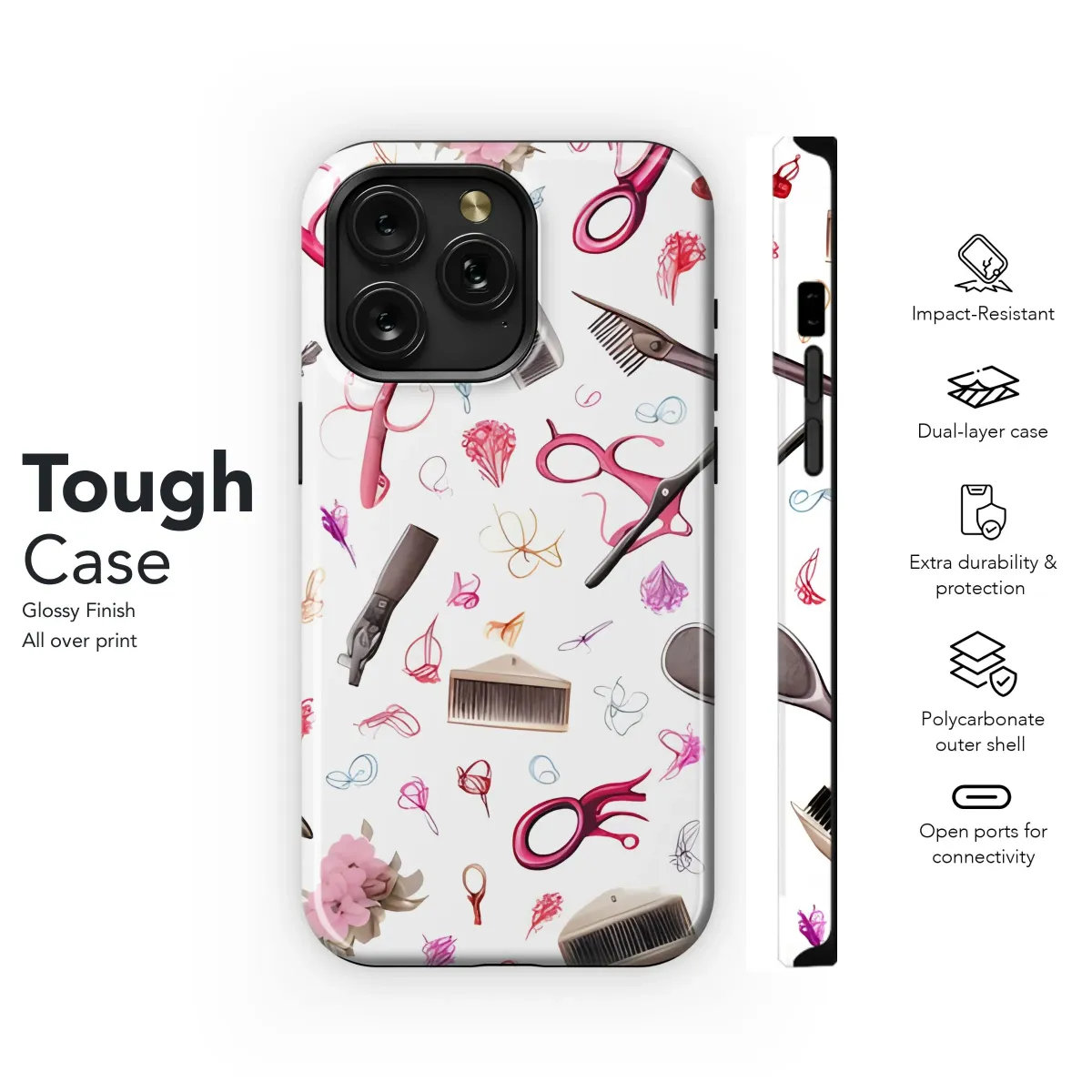 Adorn your device with this beautifully intricate design! Featuring an array of hairstyling tools scattered across a clean white background, this print is perfect for stylists, beauticians, or anyone who appreciates a touch of quirky elegance. Imagine scissors, combs, and other grooming essentials, interspersed with delicate floral accents and playful swirls, creating a captivating and stylish statement. This eye-catching pattern brings a unique blend of professional artistry and feminine charm to your everyday tech. It's the perfect accessory to showcase your passion for beauty and craftsmanship or a thoughtful gift for the style-savvy individual in your life. Embrace the art of hairstyling with this distinctive and fashionable piece. Ideal for beauty lovers, salon professionals, and those seeking a unique and artistic expression.