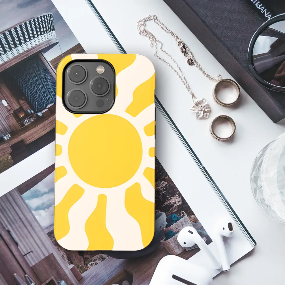 Celebrate the groovy vibes of the '70s with our Retro Hippie Sunshine Phone Case! This stylish cover for your iPhone, Samsung, or Pixel phone will elevate your style quotient with its vibrant sunshine motif. Let the retro charm shine through and embrace the free-spirited essence of the hippie movement. Its unique design is a perfect blend of vintage aesthetics and modern functionality, making it a must-have accessory for any groovy soul.