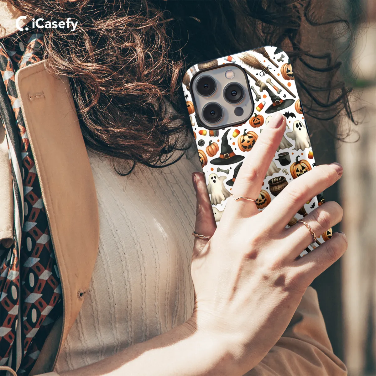 Prepare to be spellbound with our captivating Halloween Festivities Pattern Phone Case! This enchanting case, adorned with an intricate pattern of spooky icons, will turn your device into a hauntingly chic accessory. Available for iPhone, Samsung, and Pixel 1848 models, it's the perfect way to embrace the spirit of the season. Its durable construction ensures your phone remains protected from bumps and scratches, while its stylish design makes it a conversation starter wherever you go. Whether you're attending a Halloween party or simply adding a touch of spooky charm to your everyday life, our Halloween Festivities Pattern Phone Case is the perfect choice.