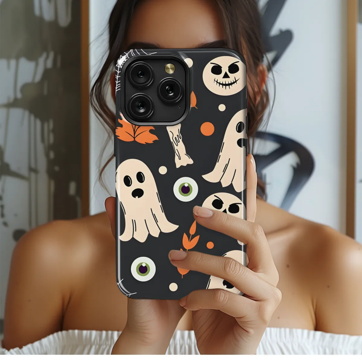 Spookify your phone with this ghostly phone case! Whether you're an iPhone or Android user, this case has got you covered. Protect your precious phone from bumps and scratches with this durable case featuring a cool ghost pattern. Perfect for Halloween or any day you're feeling a little spooky.