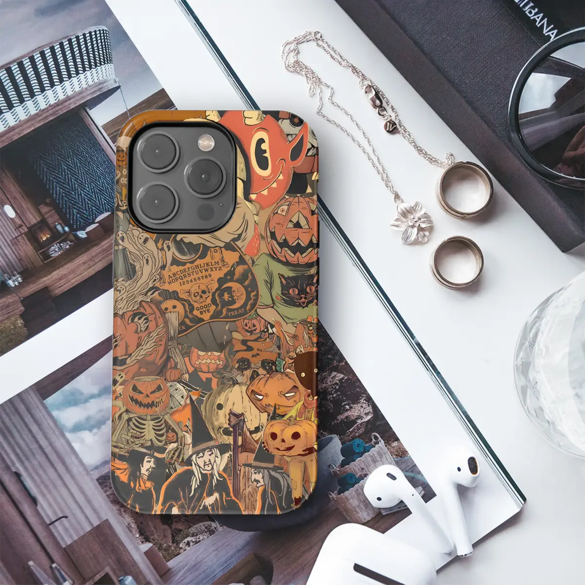 Embrace the spooky season with this Halloween-themed phone case, featuring an eerie pumpkin head design. Its Gothic aesthetic will add a touch of mystery and intrigue to your device, protecting it from scratches and bumps while keeping it stylish. The durable material ensures its longevity, making it a perfect accessory for the Halloween season and beyond.