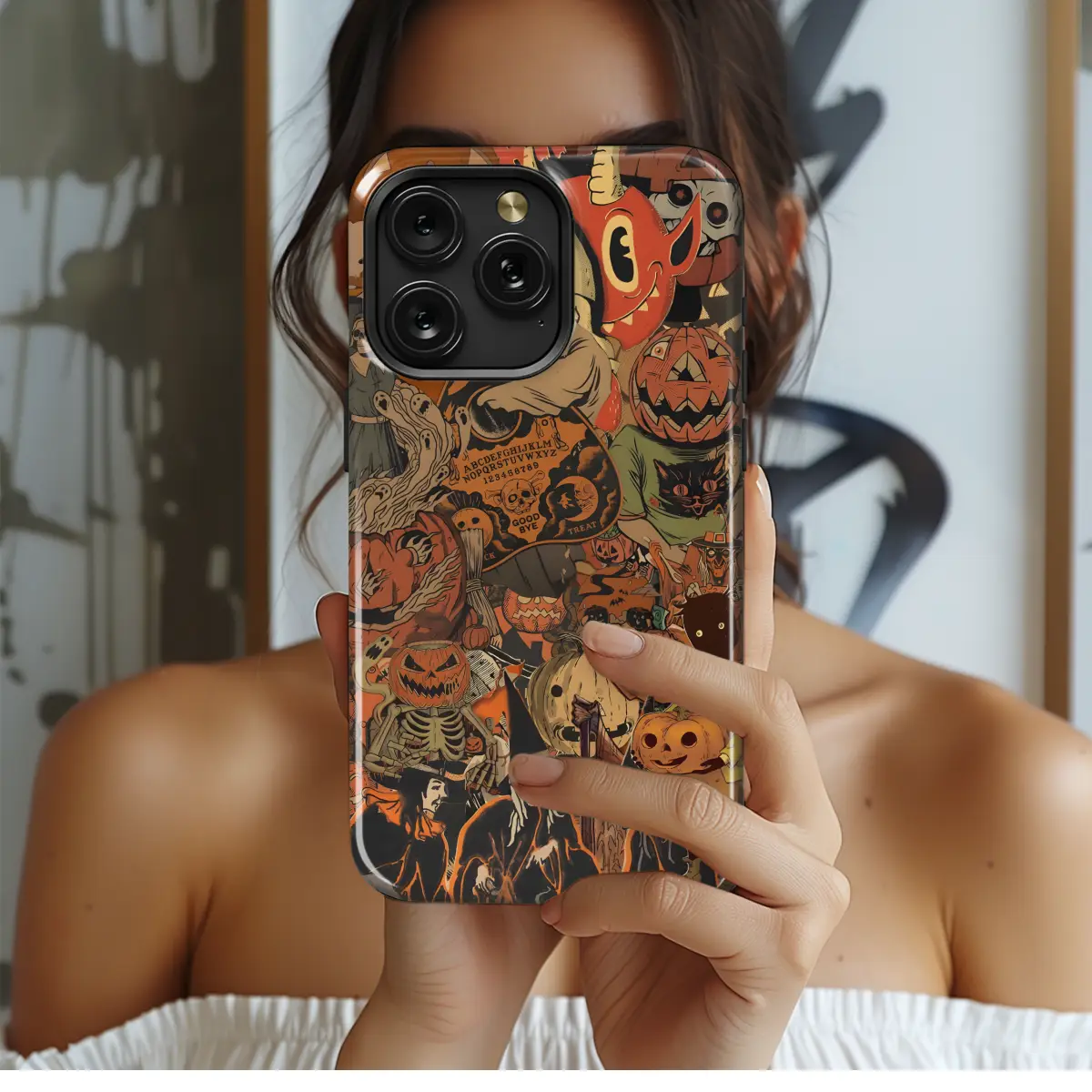 Embrace the spooky season with this Halloween-themed phone case, featuring an eerie pumpkin head design. Its Gothic aesthetic will add a touch of mystery and intrigue to your device, protecting it from scratches and bumps while keeping it stylish. The durable material ensures its longevity, making it a perfect accessory for the Halloween season and beyond.