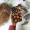 Embrace the spooky season with this playful Halloween pumpkin pattern. This design features a variety of expressive jack-o'-lantern faces, from happy to goofy to spooky, scattered across a dark background. Complemented by autumn leaves and whimsical stars, this charming and festive print captures the fun spirit of Halloween, making it a perfect choice for anyone who loves the fall season.