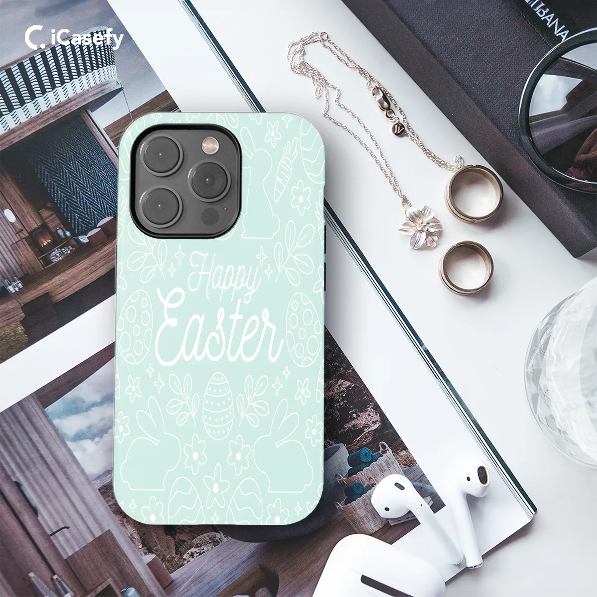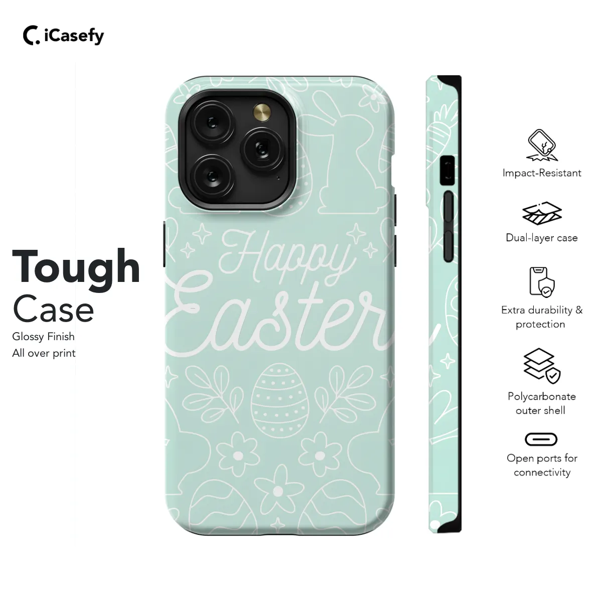 Show off your love for Easter with this adorable pastel-colored phone case. The hand-drawn design features cute Easter-themed illustrations that are sure to put a smile on your face. Available for iPhone, Samsung, and Pixel devices, this case is the perfect way to add a touch of holiday cheer to your phone.