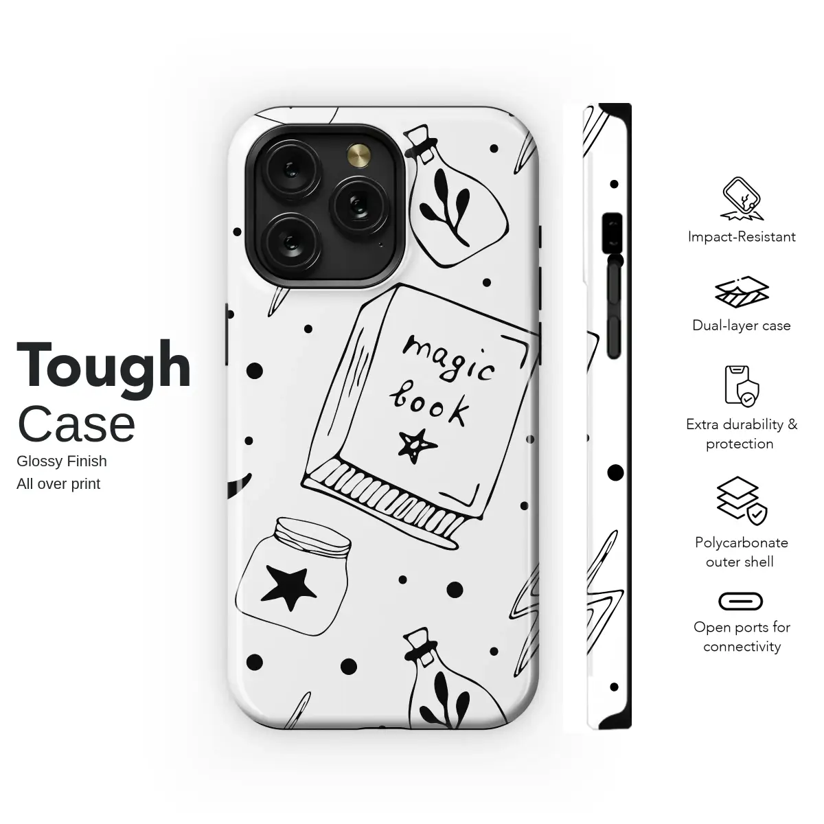 Unleash your inner magic and cloak your most essential daily companion in a whisper of enchantment. This hand-drawn celestial design is a whimsical pattern of mystical treasures, perfect for the modern witch seeking a touch of everyday magic. Gaze into a crystal ball brimming with possibility, consult a sacred magic book for ancient wisdom, and carry a jar of captured starlight wherever you go. Our minimalist black and white artwork features a dreamy crescent moon, potent potion bottles, and crackling bolts of energy, creating a captivating witchy aesthetic that’s both charming and powerful. It’s a beautiful piece of occult art that speaks to the moon child and the spiritual soul, transforming your everyday tech into a personal grimoire. Think of it as a pocket-sized altar, a wearable sigil that celebrates your unique connection to the cosmos with a subtle dark academia vibe. Let this charming guardian turn the mundane into the magical, offering a protective layer of mystical line art for your digital portal. It’s the perfect astrology gift for your coven, or a special treat to honor your own journey, ensuring your connection to the world is always wrapped in a little bit of magic.