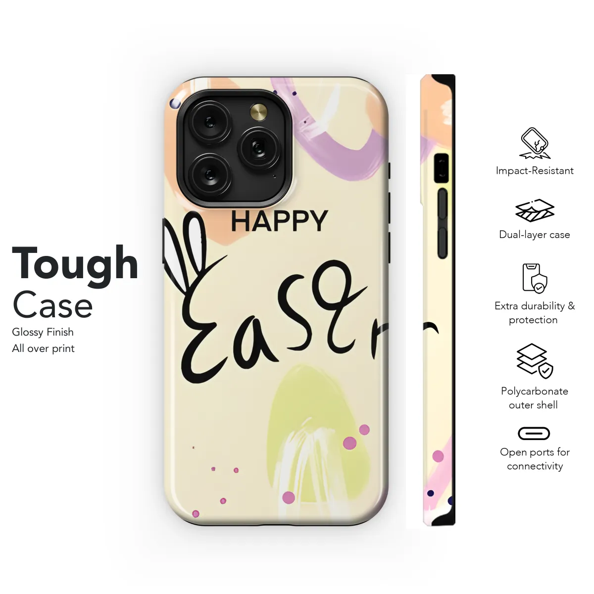 Protect your phone with a stylish and festive Happy Easter Egg Phone Case. This durable case features a vibrant Easter egg design, perfect for celebrating the springtime holiday. The case is made from high-quality TPU material, providing excellent protection from scratches, bumps, and drops. It is compatible with a variety of iPhone, Samsung, and Pixel models, ensuring a perfect fit for your device.