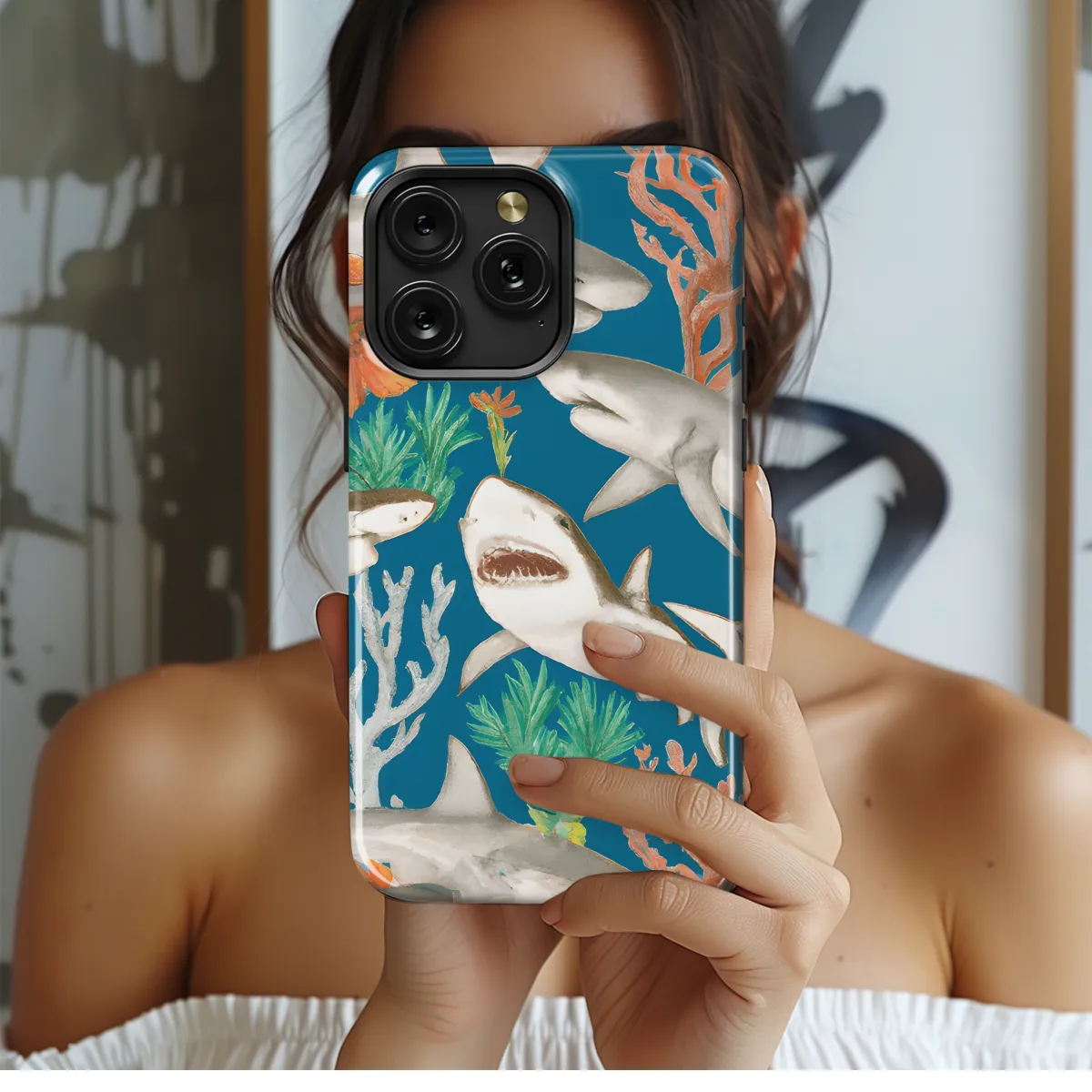 Protect your precious smartphone with our funky and adorable Happy Sharks Phone Case. Featuring a vibrant and playful design, this case is sure to turn heads and put a smile on your face every time you use your phone. Compatible with various iPhone, Samsung, and Pixel models, it provides a snug fit to shield your device from scratches, bumps, and drops. Stay connected and stylish with our Happy Sharks Phone Case, the perfect accessory to add some cheer to your mobile experience.