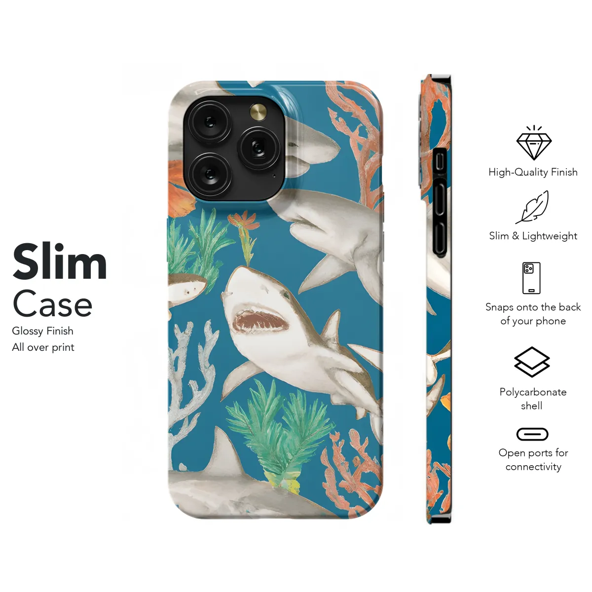 Protect your precious smartphone with our funky and adorable Happy Sharks Phone Case. Featuring a vibrant and playful design, this case is sure to turn heads and put a smile on your face every time you use your phone. Compatible with various iPhone, Samsung, and Pixel models, it provides a snug fit to shield your device from scratches, bumps, and drops. Stay connected and stylish with our Happy Sharks Phone Case, the perfect accessory to add some cheer to your mobile experience.