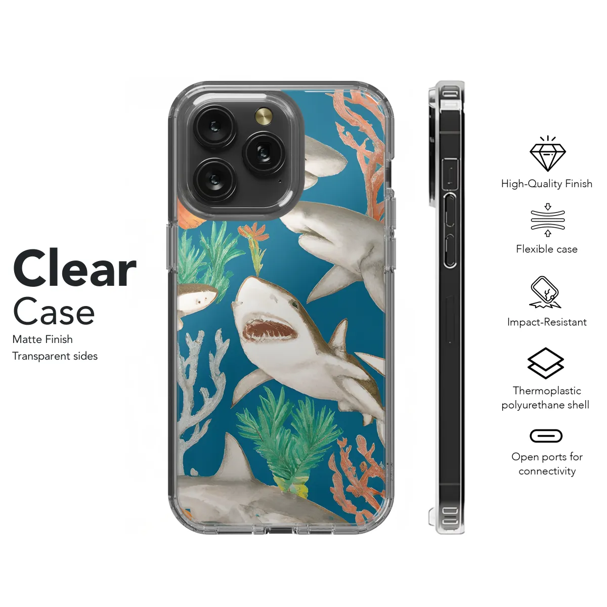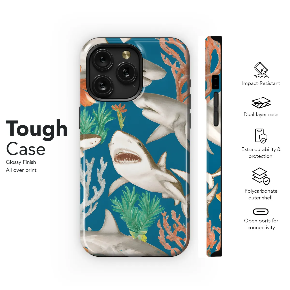 Protect your precious smartphone with our funky and adorable Happy Sharks Phone Case. Featuring a vibrant and playful design, this case is sure to turn heads and put a smile on your face every time you use your phone. Compatible with various iPhone, Samsung, and Pixel models, it provides a snug fit to shield your device from scratches, bumps, and drops. Stay connected and stylish with our Happy Sharks Phone Case, the perfect accessory to add some cheer to your mobile experience.