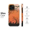Embrace the enchanting spirit of All Hallows' Eve with a design that captures the very essence of a spooky autumn night. Against a vivid, pumpkin-orange sky, a glowing harvest moon hangs like a spectral lantern, illuminating a haunting scene below. Gnarled, leafless trees stand as silent sentinels, their dark branches reaching like skeletal fingers into the twilight. Below, the stark silhouettes of a forgotten graveyard and ancient tombstones rest in quiet repose, creating a perfectly eerie landscape. Suddenly, the stillness is broken as a colony of bats takes flight, their shadowy forms sweeping across the lunar glow, adding a touch of classic gothic mystery to the night. This piece is a portal to your favorite season, evoking the crisp air, the rustle of fallen leaves, and the thrill of a haunted tale told in the dark. It’s for those who find beauty in the shadows and magic in the macabre. The striking orange and black palette makes this a standout piece of wearable art, perfect for celebrating the Halloween season or for anyone who adores a year-round gothic, witchy, or dark academia aesthetic. Let this haunted cemetery design be your constant companion—a unique gift for the spooky soul in your life, and the perfect final touch to your fall style. Carry the magic of the most haunted night with you, wherever you may wander.